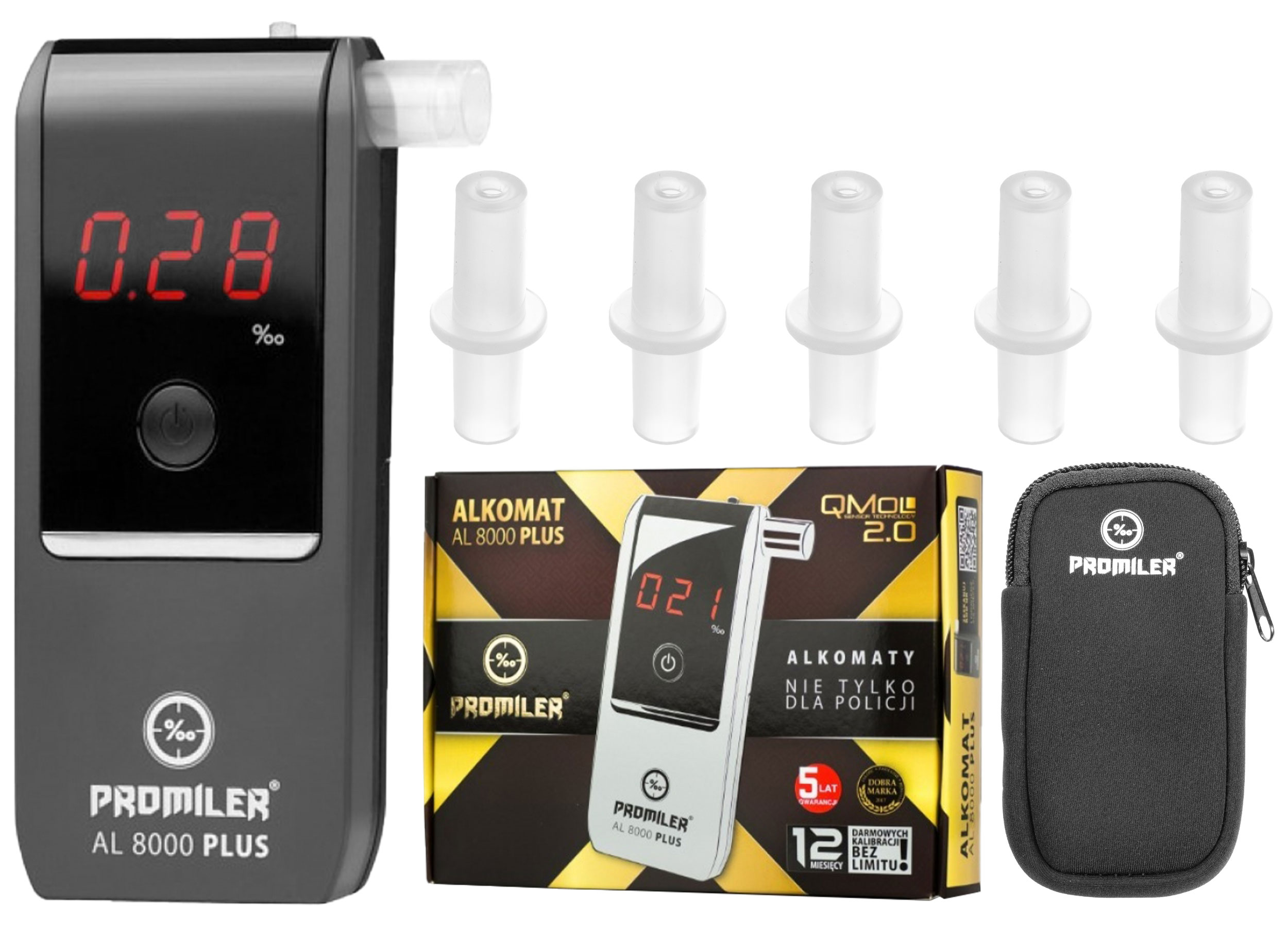 AL 8000 PLUS to wysoce precyzyjny alkomat z platynowym czujnikiem elektrochemicznym QMol 2.0 oraz najnowszym oprogramowaniem zwiększającym wydajność i szybkość pomiaru. Urządzenie objęte jest darmową roczną kalibracją!