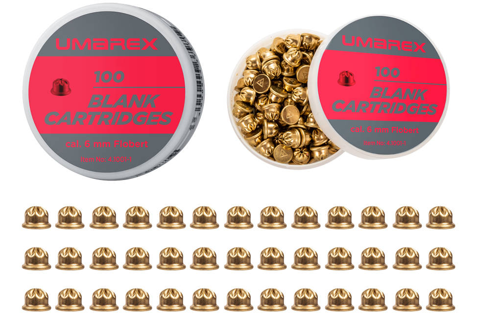 Umarex 6 mm Flobert 100 szt. to głośne naboje hukowe typu short przeznaczone do broni alarmowej.
