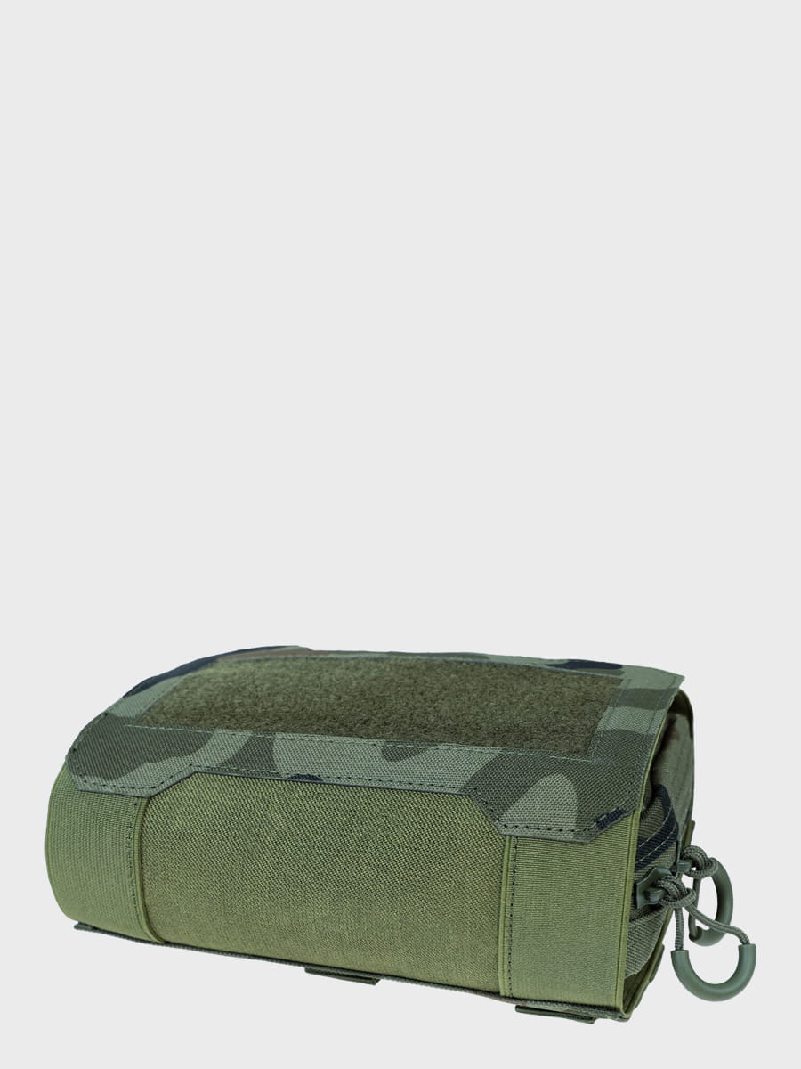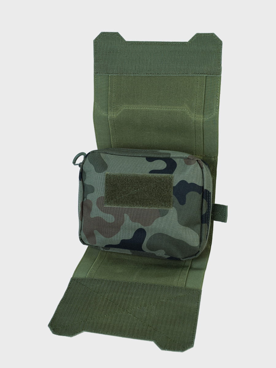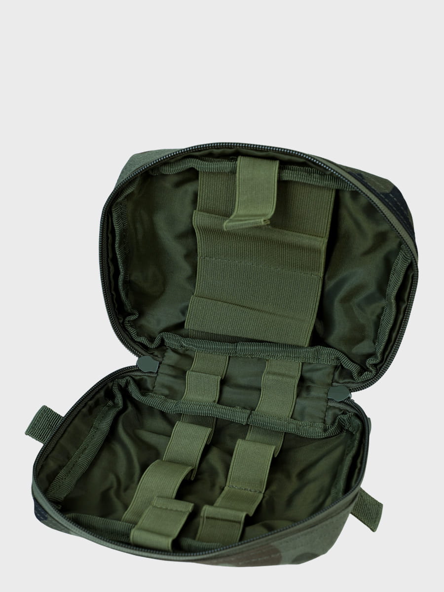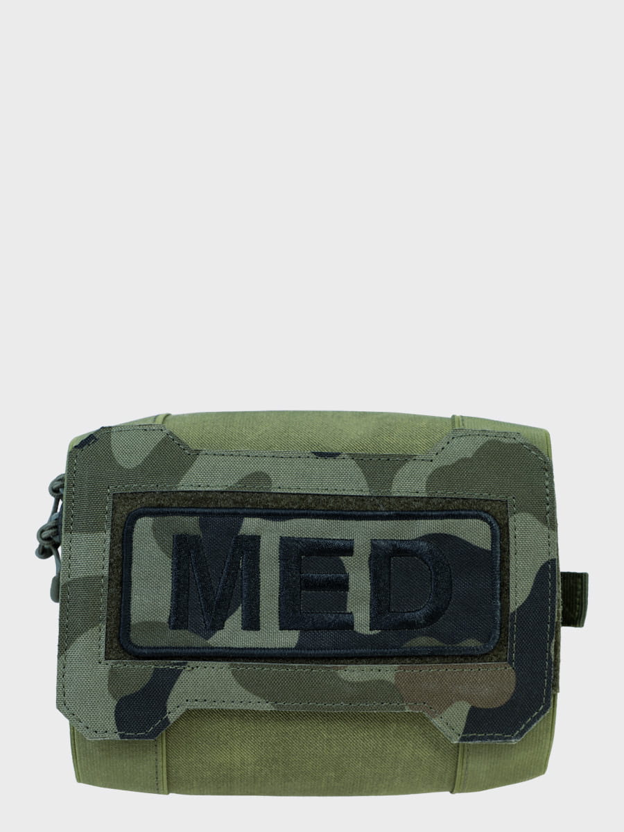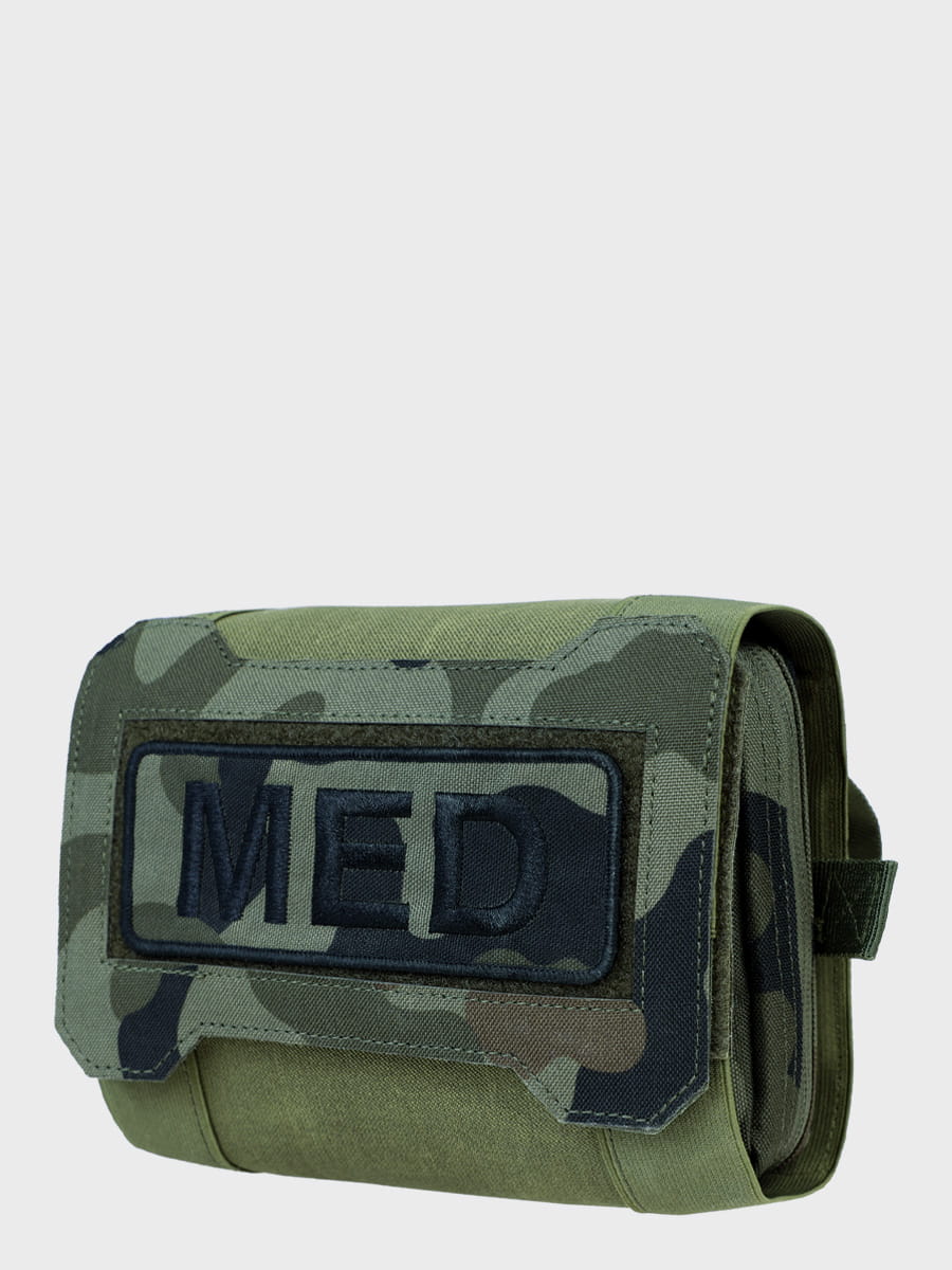 Zastosowanie rzepu Velcro oraz emblematu MED zapewnia dodatkowe wsparcie i identyfikację w każdej sytuacji ratunkowej natomiast system Molle/Pals umożliwia przypięcie apteczki do różnego rodzaju ekwipunku zwiększając jej wszechstronność.