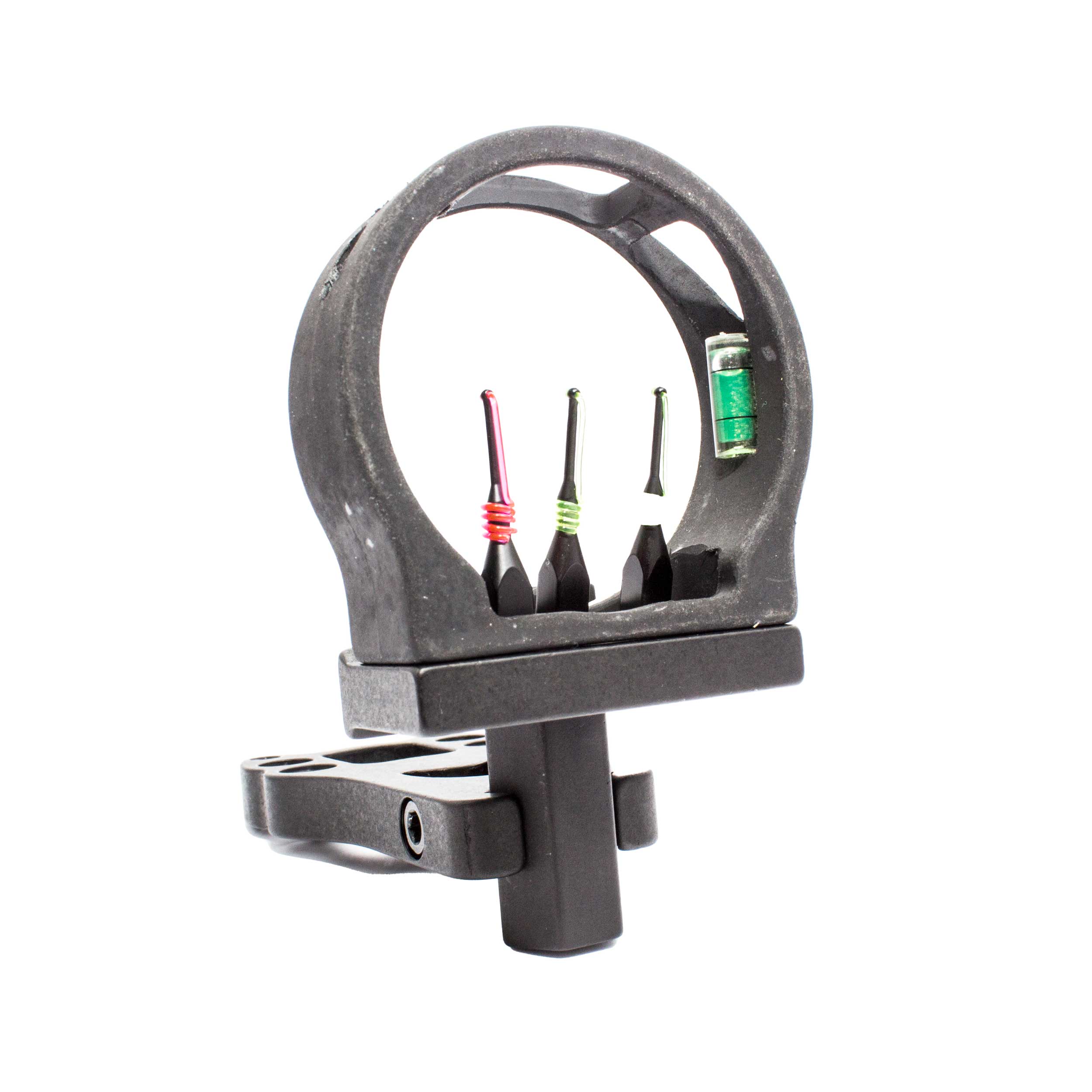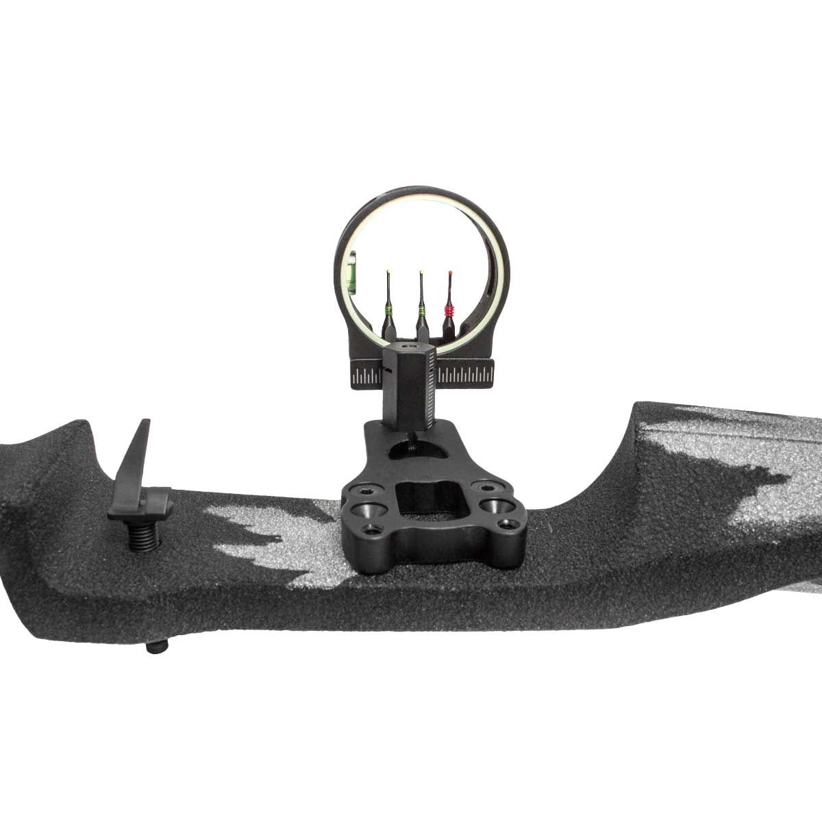 Celownik myśliwski Poe Lang do łuku, wyposażony w 3 piny światłowodowe oraz poziomicę.