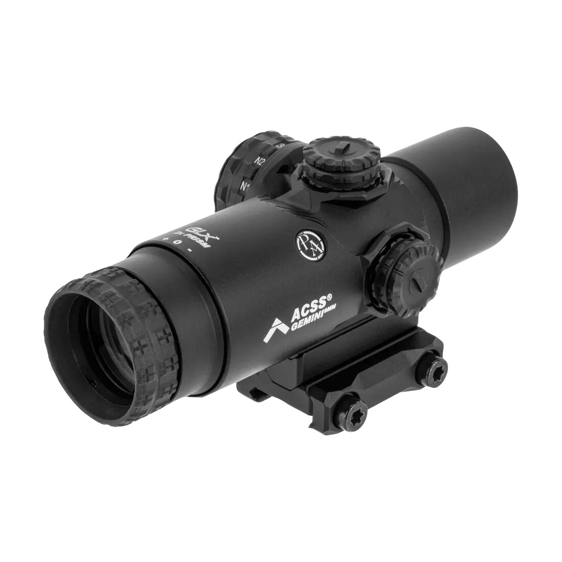 ACSS Gemini to autorska siatka Primary Arms wyskalowana do balistyki karabinków pcc 9 mm. Siatka ACSS Gemini w centralnej części ma cieńszy szewron (odwrócona litera V) otoczony grubszą podkową. Pod szewronem zamieszczono punktową podziałkę do nanoszenia poprawek opadu. W rezultacie powstała intuicyjna siatka, która świetnie sprawdzi się do strzelania dynamicznego na krótkim dystansie i precyzyjnego na średnim dystansie. ACSS to niezwykle prosty i jednocześnie funkcjonalny system celowniczy, którego zalety docenili początkujący i doświadczeni strzelcy na całym świecie.