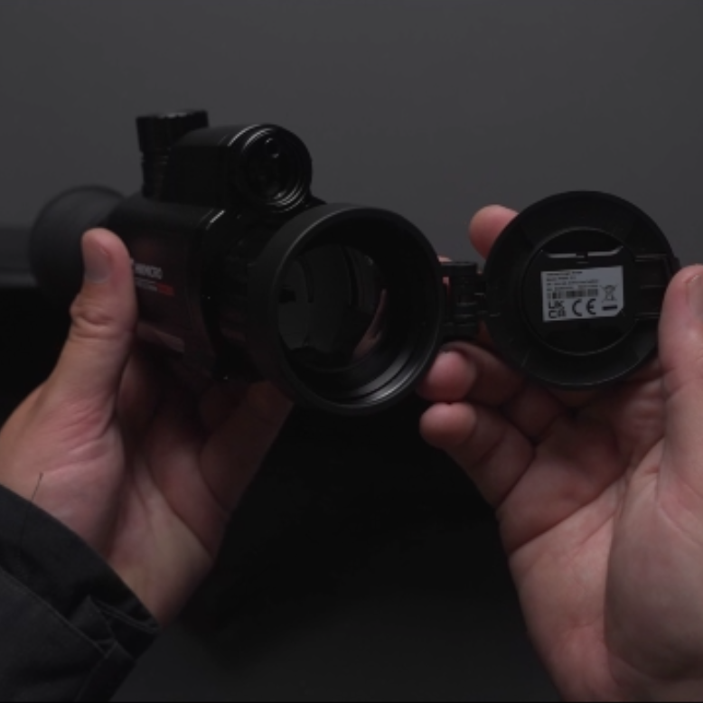 Kompaktowa obudowa urządzenia została wykonana z materiału Magnal, będącego lekkim i wytrzymałym stopem glinu i magnezu. W połączeniu ze standardem szczelności IP67 zagwarantuje nam to wysoką niezawodność urządzenia niezależnie od warunków środowiska. Konstrukcja urządzenia sprawia, że potrafi ono wytrzymać wibracje powstające przy odrzucie .375 H&H czy 9,3 × 64. Na obudowie umieszczone zostały przyciski i pokrętło pozwalające nam na łatwą i instynktowną obsługę urządzenia. Zakręcany przedział widoczny na górze mieści jedno ogniwo 18650, natomiast umieszczony na obudowie port USB-C umożliwia jego szybkie ładowanie.