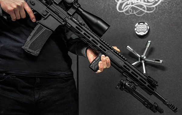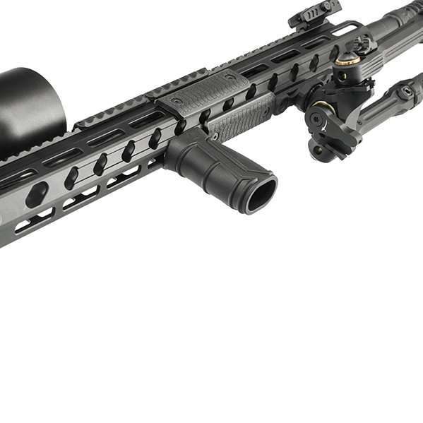 Chwyt pionowy to jeden z najczęściej stosowanych dodatków do karabinków, który zwiększa kontrolę nad bronią oraz ułatwia manewrowanie nią. Chwyt wykonano z wytrzymałego polimeru, który dla zwiększenia przyczepności pokryto warstwą gumy o właściwościach antypoślizgowych. Chwyt ma dwustronną konstrukcję, dlatego można go mocować na broni w pozycji odpowiadającej naszym potrzebom.