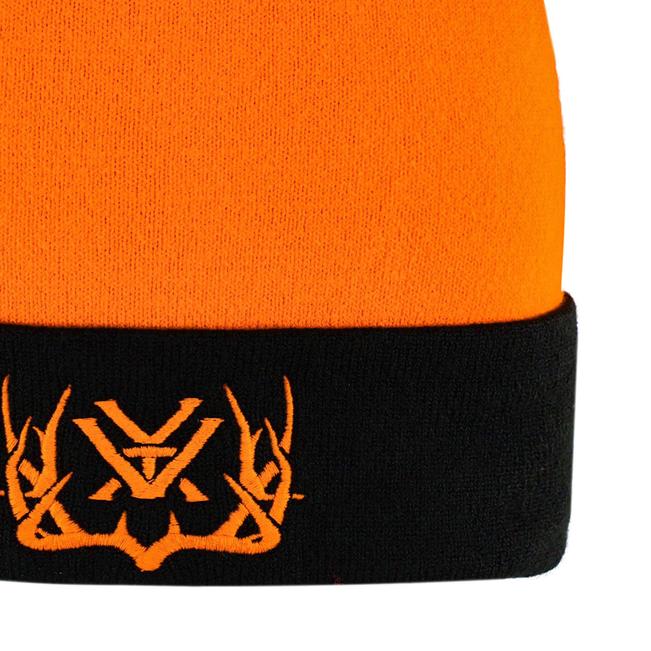 Vortex Blaze Knit to ciepła czapka myśliwska w pomarańczowej, ostrzegawczej kolorystyce, która zwiększa naszą widoczność podczas polowania z nagonką.