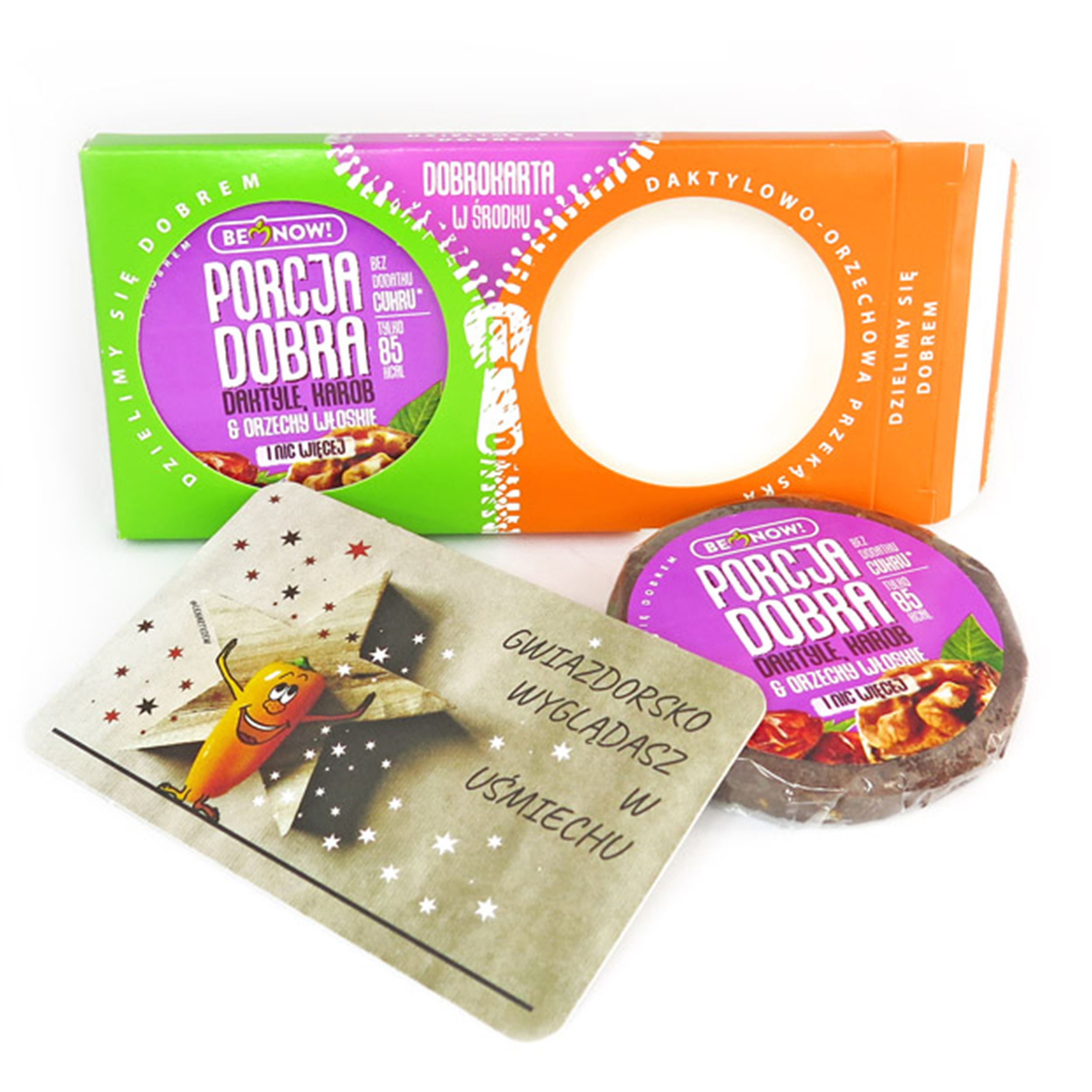 Dwupak kostka z niespodzianką od firmy Porcja Dnia jest najlepszą odpowiedzią na potrzeby dziecka. Łączy w sobie zdrową przekąską oraz zabawę w postaci dobrokarty. Smak morelowo-orzechowy.