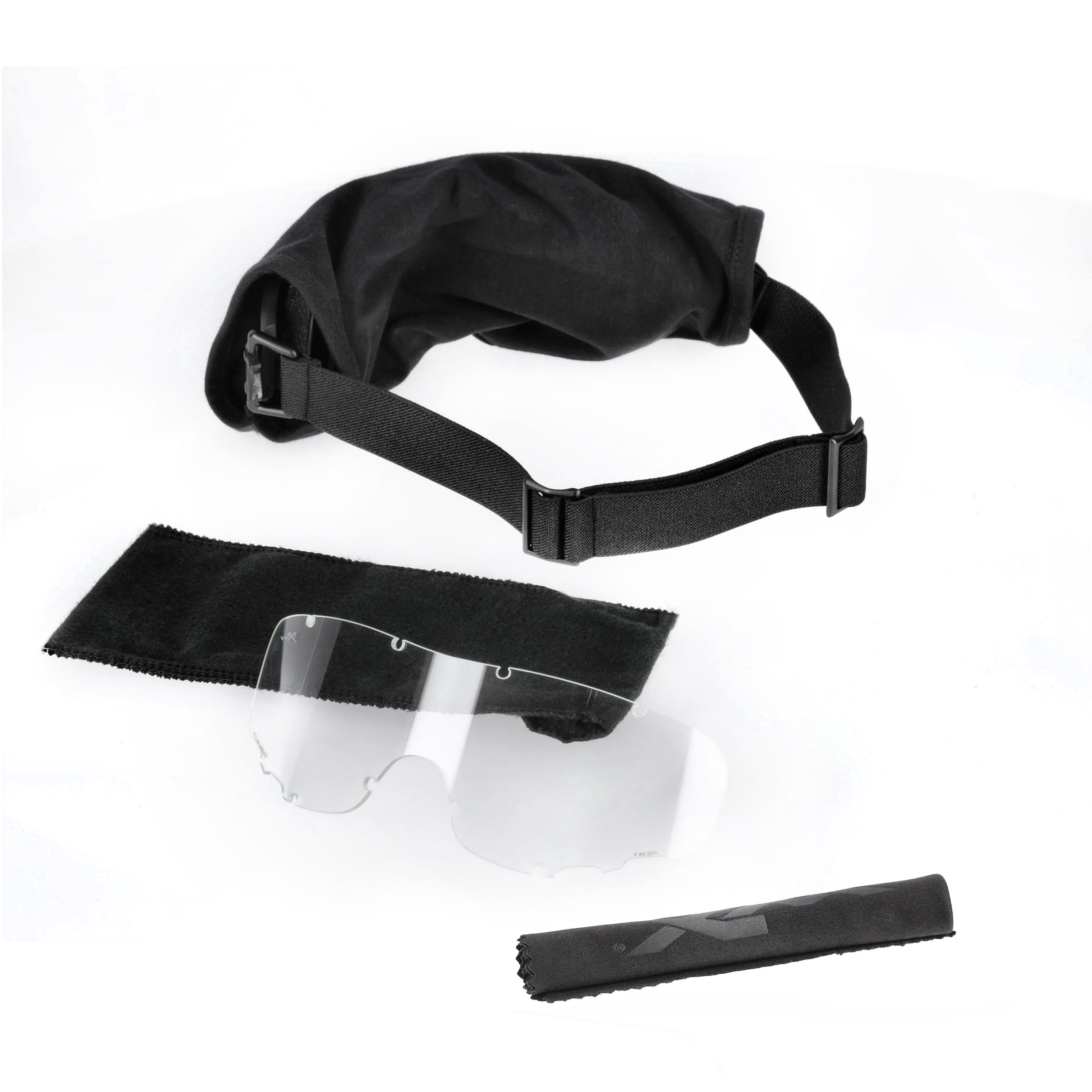 Gogle mają elastyczny pasek SPEAR z wygodnym systemem regulacji Tri-Glide oraz szybkim wypięciem. Gogle Wiley X Spear są kompatybilne z paskami Wiley X ARC Rail Attachment System (RAS), które umożliwiają błyskawiczne zamocowanie gogli do szyn hełmu balistycznego. Uszczelka Facial Cavity (odłączana od oprawki) chroni wzrok przed czynnikami zewnętrznymi i skutecznie zatrzymuje wiatr, kurz, pył oraz inne zanieczyszczenia mogące podrażniać oczy. Odpowiada także, za blokowanie światła zewnętrznego, które może obniżać wydajność optyczną okularów. Gogle Wiley X Spear mają niski profil kompatybilny z systemami noktowizyjnymi. W komplecie 2 soczewki ochronne o różnym przeznaczeniu.