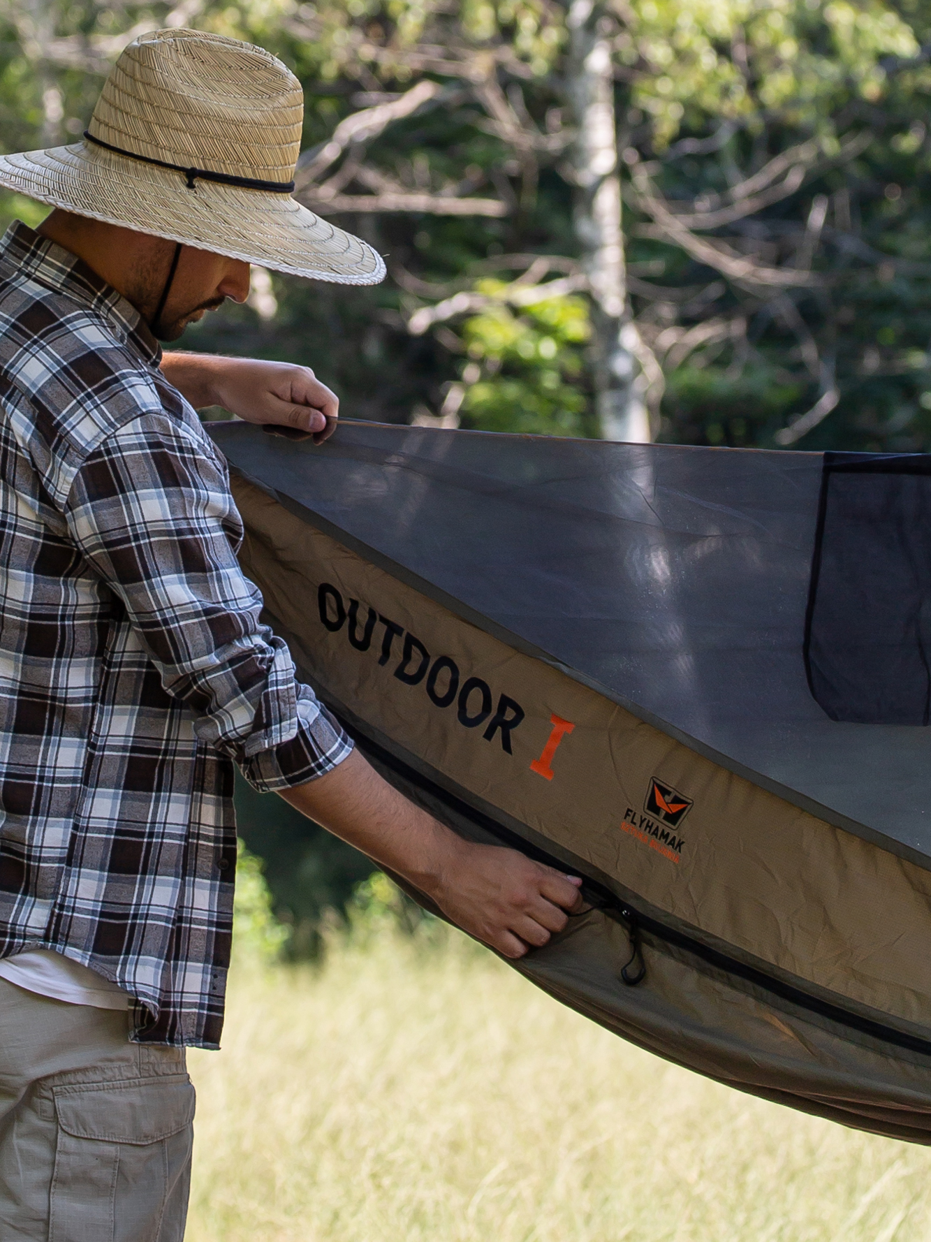 Hamak Flyhamak OutDoor I ciemnooliwkowy to profesjonalny hamak survivalowy wyposażony w zintegrowaną moskitierę, która ochroni latem przed insektami.