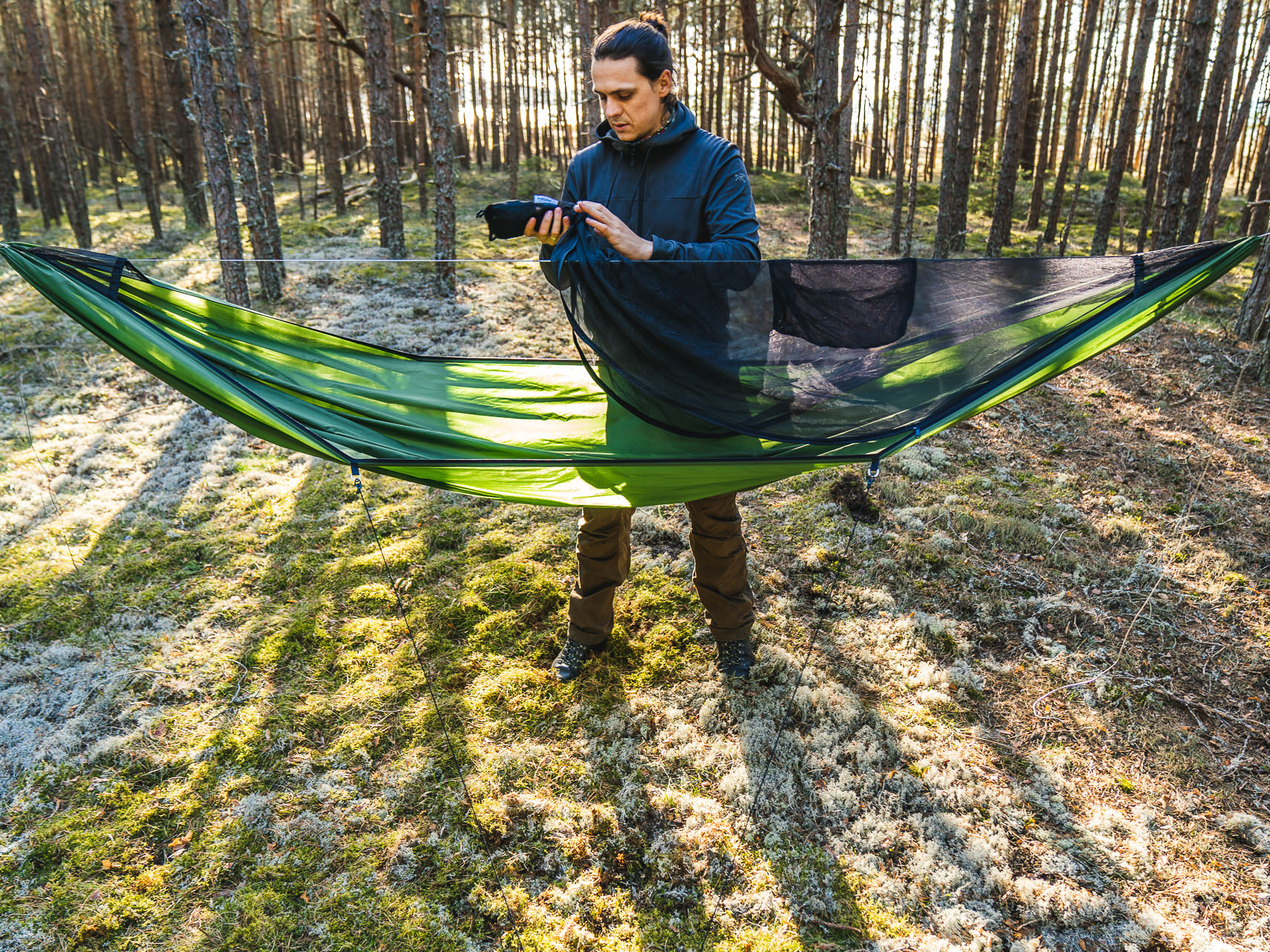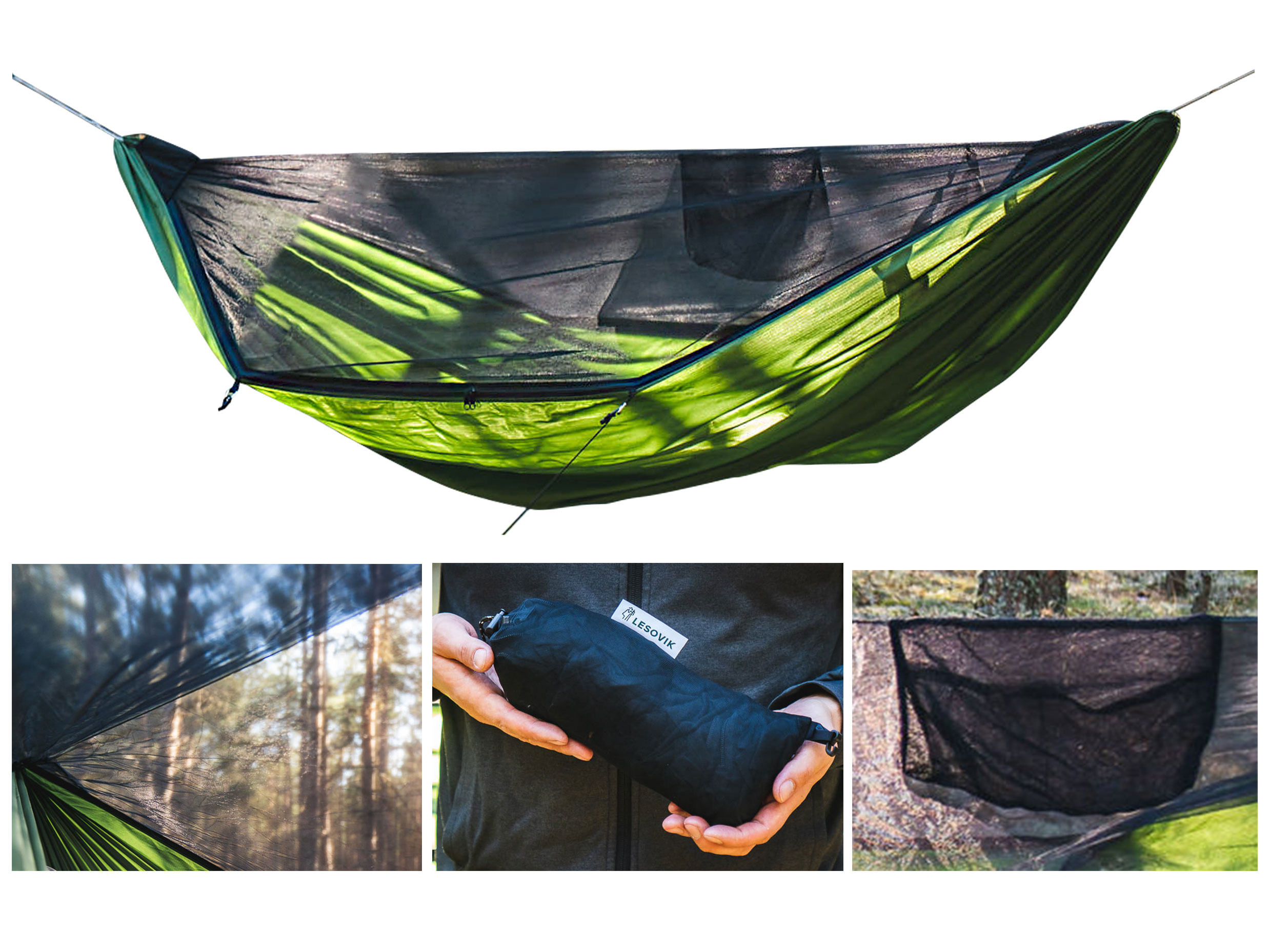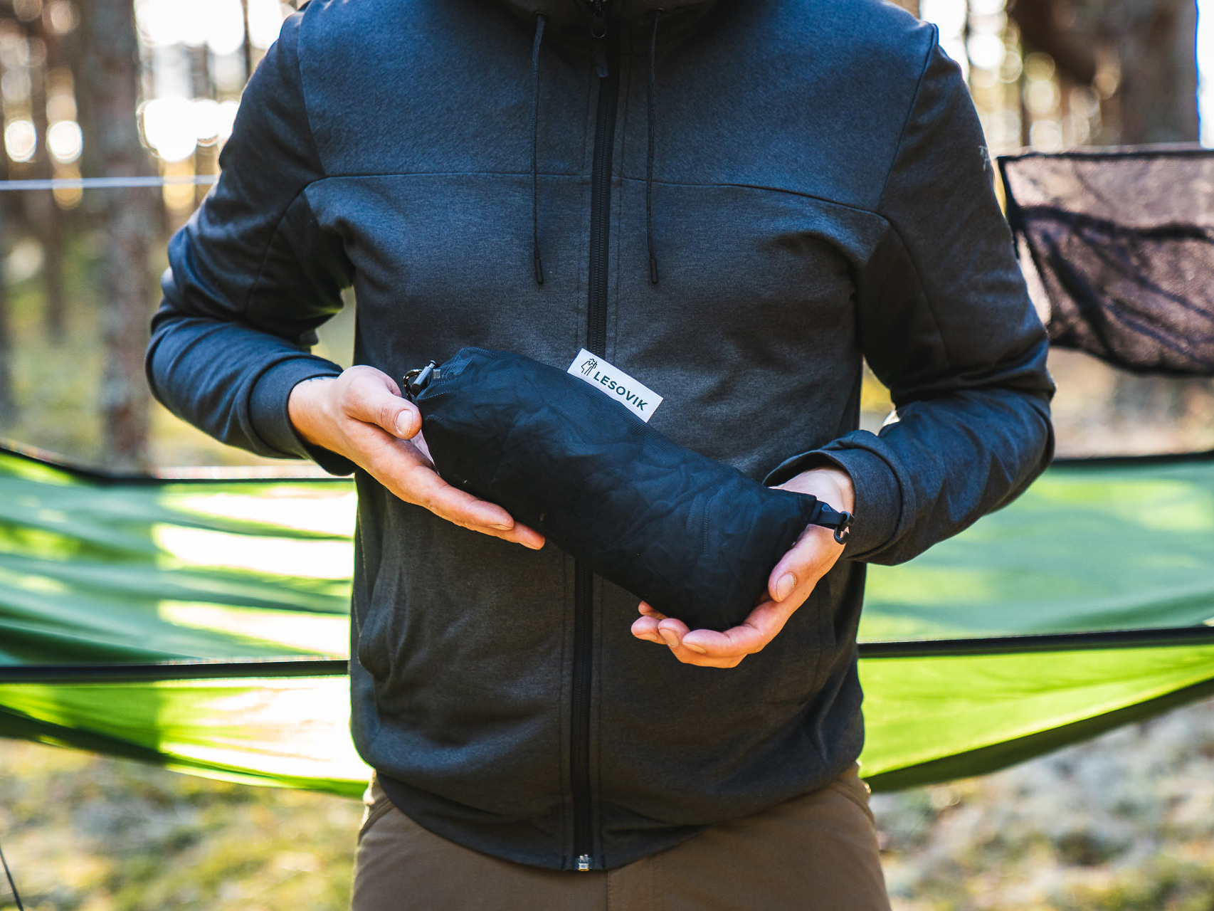 Lesovik Draka to profesjonalny hamak wyprawowy, ze zintegrowana moskitierą, systemem zawieszenia SMUK, organizerem oraz kompletem pokrowców transportowych.