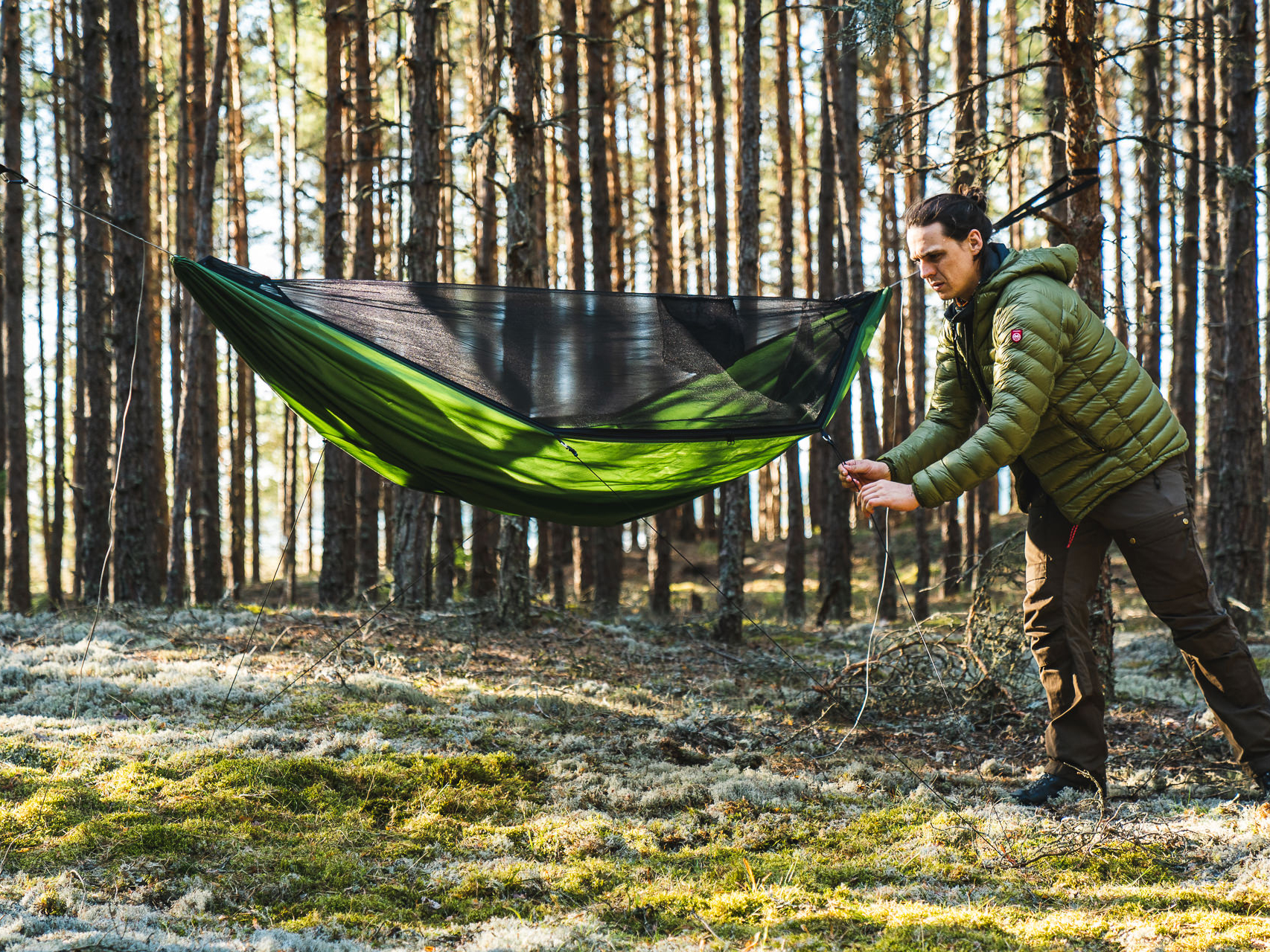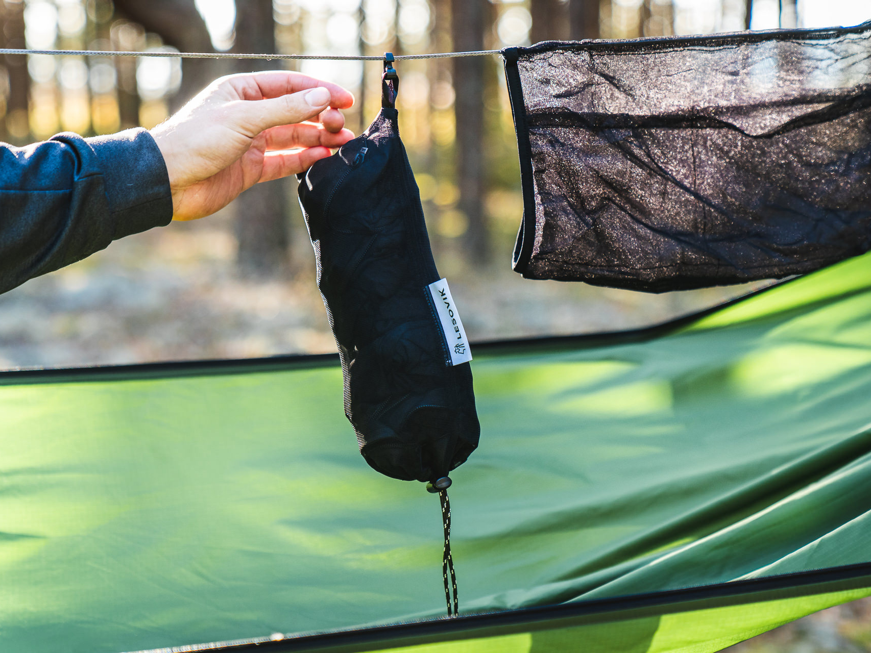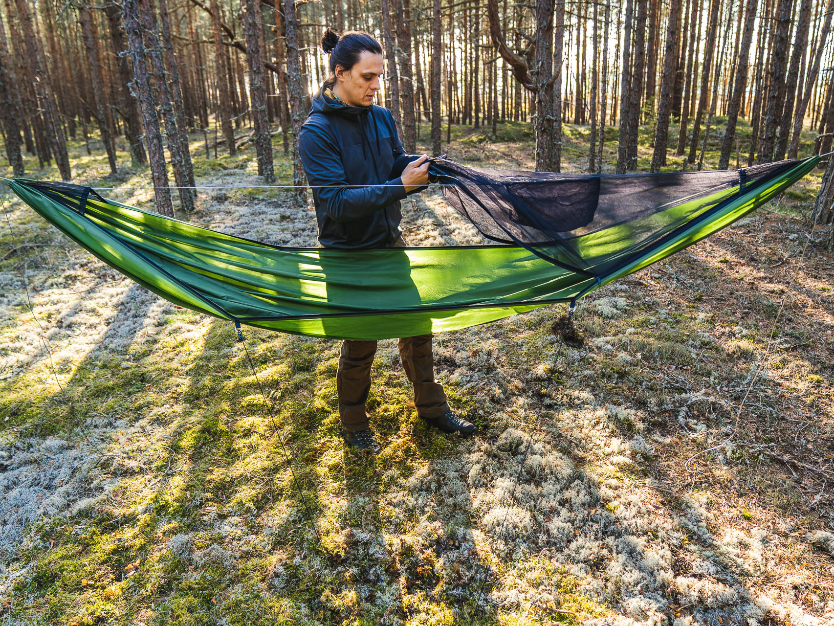 Lesovik Draka to profesjonalny hamak wyprawowy, ze zintegrowana moskitierą, systemem zawieszenia SMUK, organizerem oraz kompletem pokrowców transportowych.