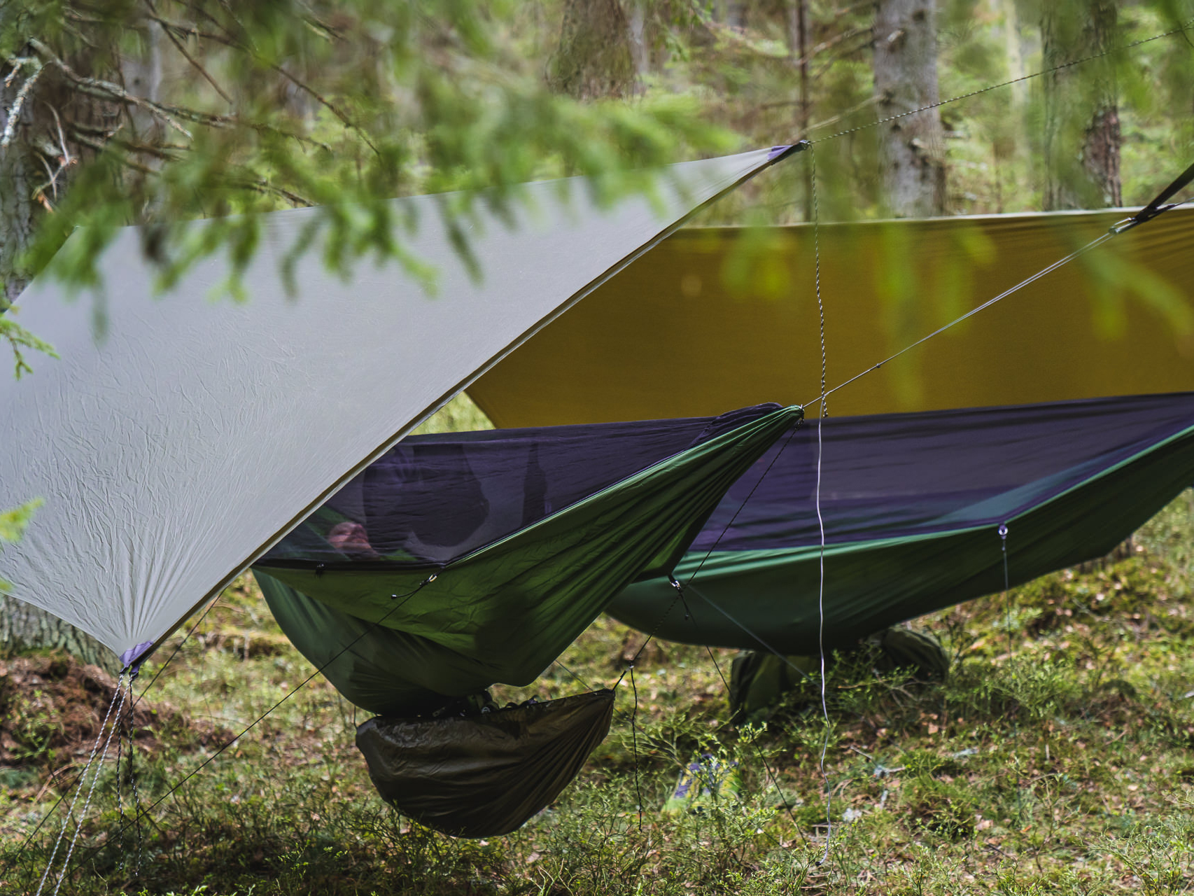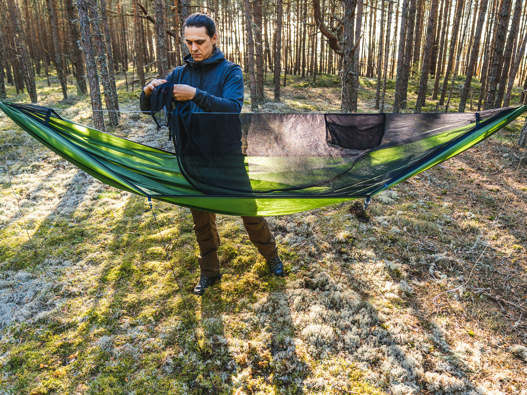 Hamak uzupełniają 4 boczne odciągi napinane dwoma elastycznymi gumami. Odciągi pozwalają na zwiększenie przestrzeni hamaka, ułatwiając w ten sposób dostęp do śpiwora, wygodniejsze ułożenie i bardziej komfortowy wypoczynek.