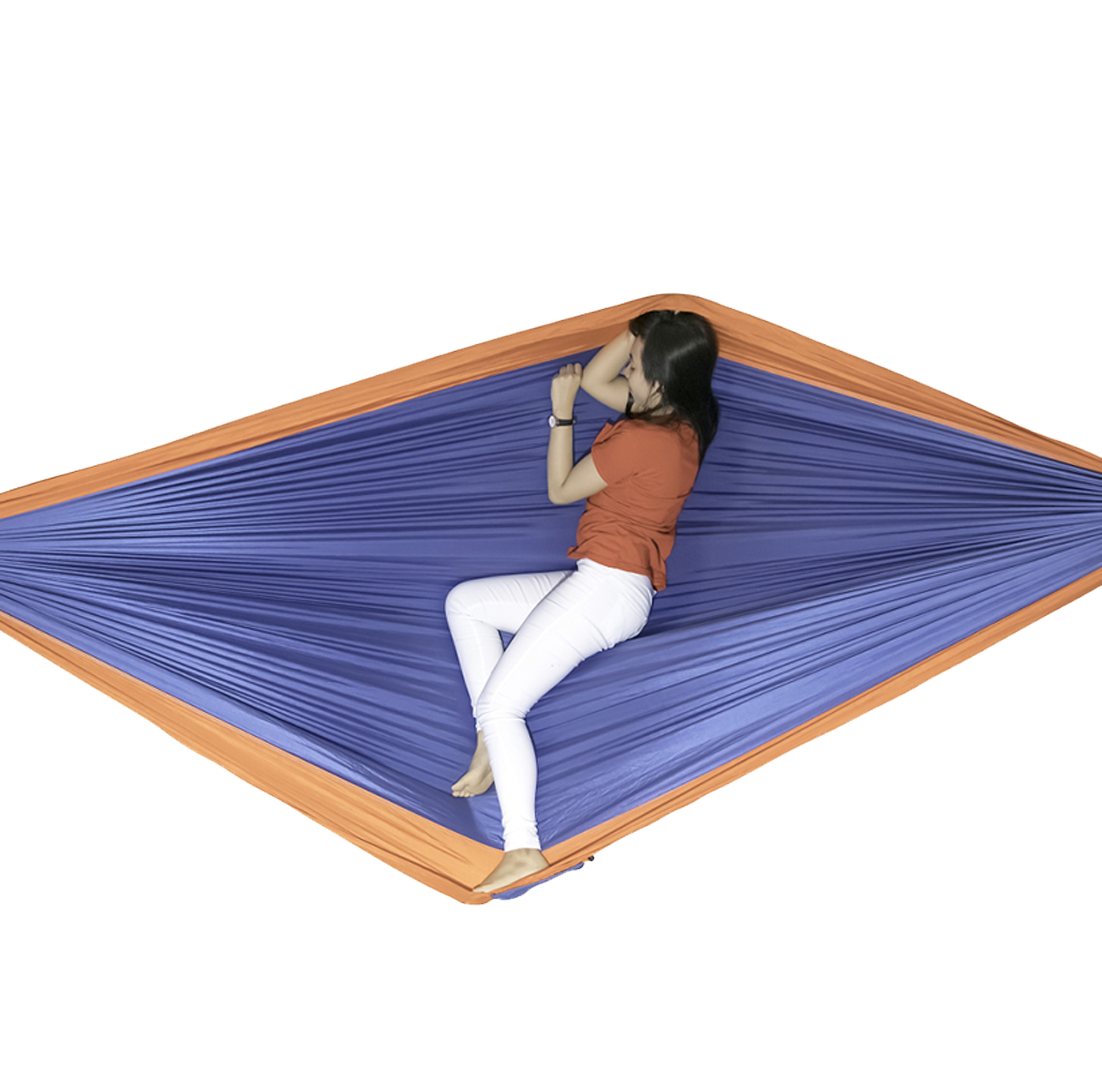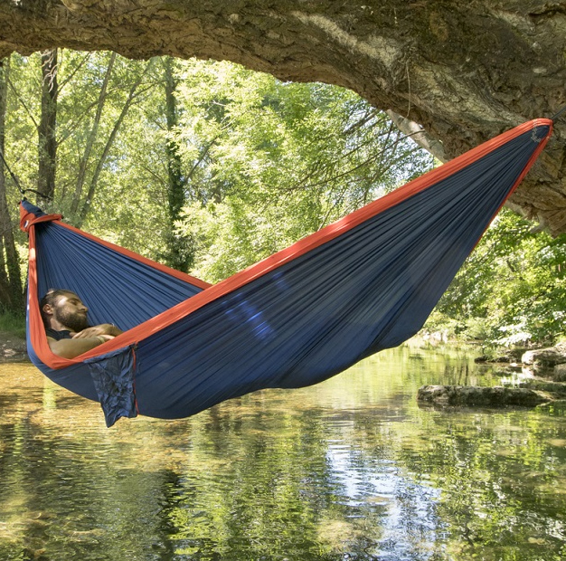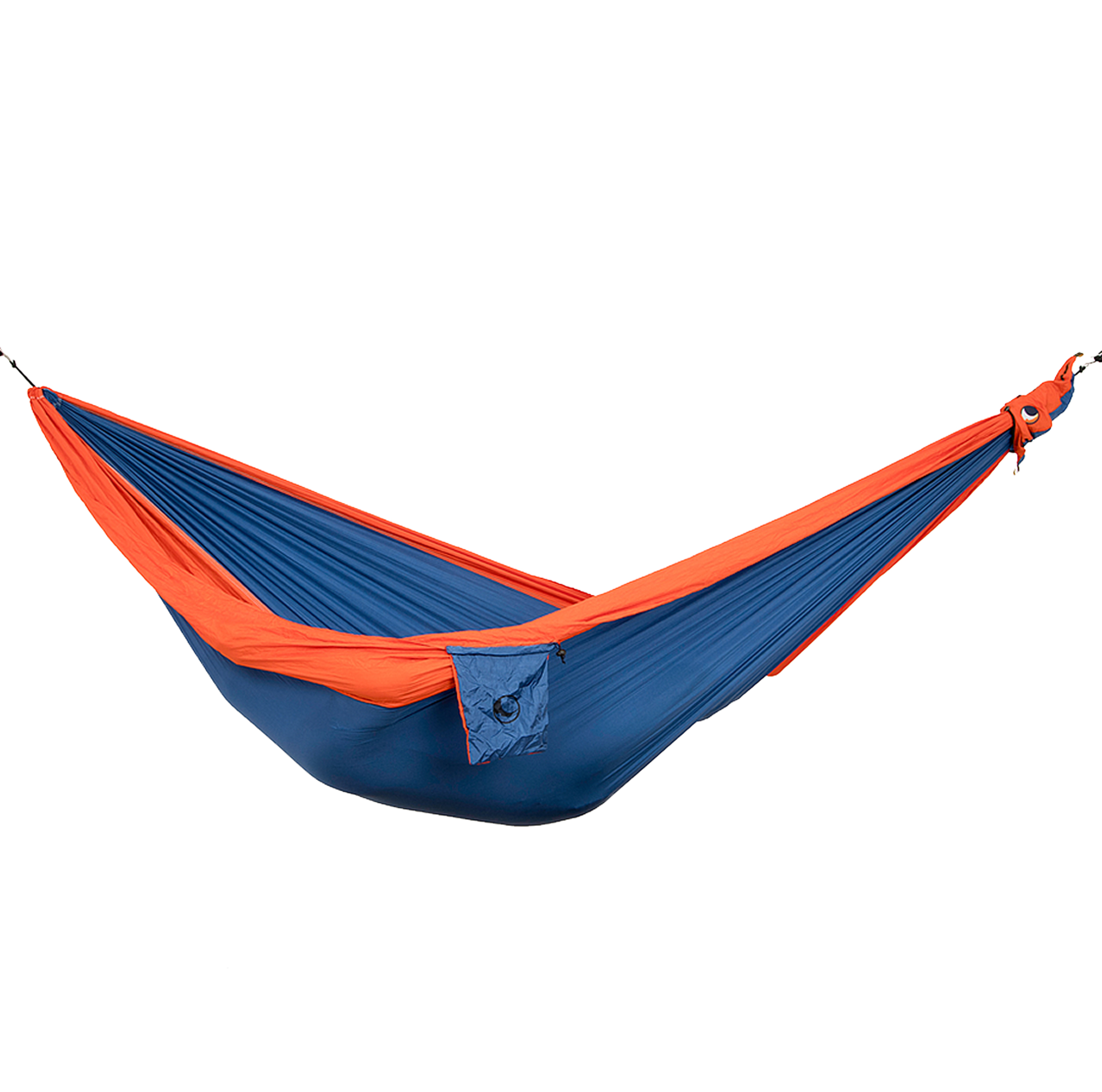 Hamak Ticket To The Moon dwuosobowy niebiesko-pomarańczowy to lekki hamak turystyczny wykonany z szybkoschnącej tkaniny nylonowej gwarantującej wytrzymałość oraz komfort wypoczynku.
