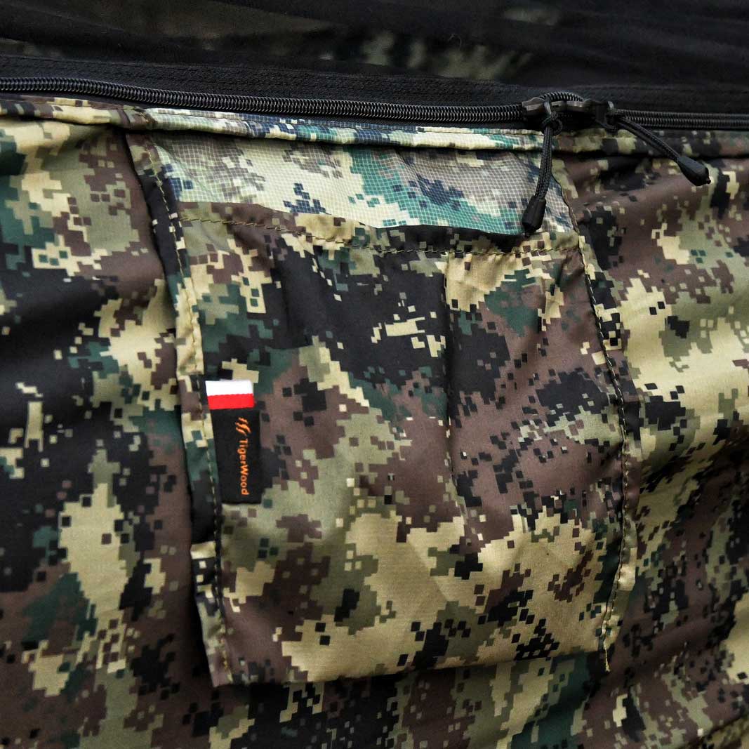 Hamak TigerWood Ważka V2 wykorzystuje wzmocnioną siatką ripstop tkaninę nylonową, gwarantującą te same korzyści wsparte zwiększoną odpornością na uszkodzenia. Materiał charakteryzuje się wysoką odpornością na rozciąganie, dzięki czemu bez problemu utrzyma ciężar do 275 kg. Charakteryzuje się przy tym niską masą oraz dobrą oddychalnością, dzięki czemu będzie komfortowy zarówno w transporcie jak i podczas użytkowania. Umieszczona na boku hamaka kieszonka umożliwi przechowanie pod ręką kluczowych akcesoriów. Zintegrowana moskitiera została natomiast wyposażona w cięciwy, które pozwalają na jej odpowiednie napięcie dla komfortu użytkownika.