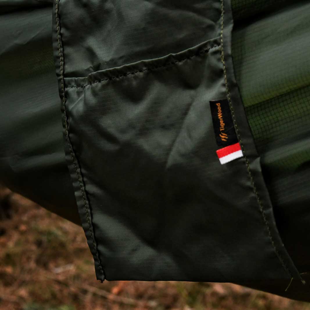Hamak TigerWood Ważka V2 wykorzystuje wzmocnioną siatką ripstop tkaninę nylonową, gwarantującą te same korzyści wsparte zwiększoną odpornością na uszkodzenia. Materiał charakteryzuje się wysoką odpornością na rozciąganie, dzięki czemu bez problemu utrzyma ciężar do 275 kg. Charakteryzuje się przy tym niską masą oraz dobrą oddychalnością, dzięki czemu będzie komfortowy zarówno w transporcie jak i podczas użytkowania. Umieszczona na boku hamaka kieszonka umożliwi natomiast przechowanie pod ręką kluczowych akcesoriów.