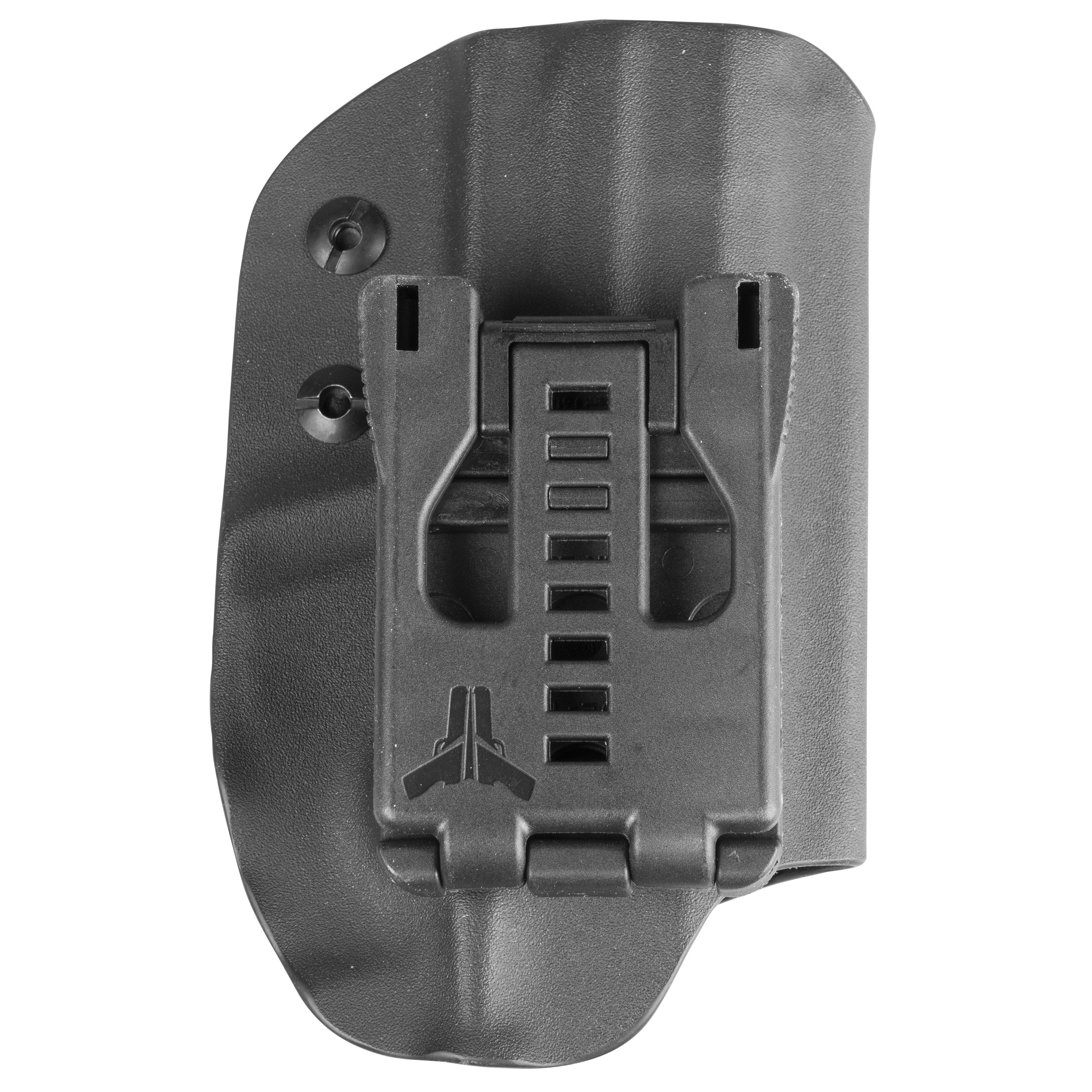 Kabura wykorzystuje klamrę typu TekLok wykonaną z ekstremalnie wytrzymałego kompozytu nylonowego. Rozwiązanie tego typu gwarantuje wysoką uniwersalność, a zarazem stabilność dzięki możliwości dostosowania prześwitu klamry do szerokości używanego pasa. Podwójna blokada sprawia, że kabura zawsze pozostaje na swoim miejscu.