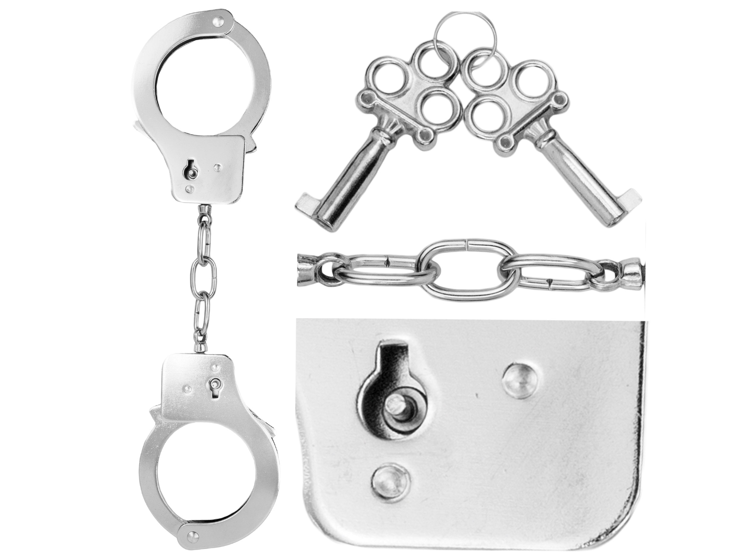 Elementy zestawu kajdanek: kajdanki, dwa kluczyki