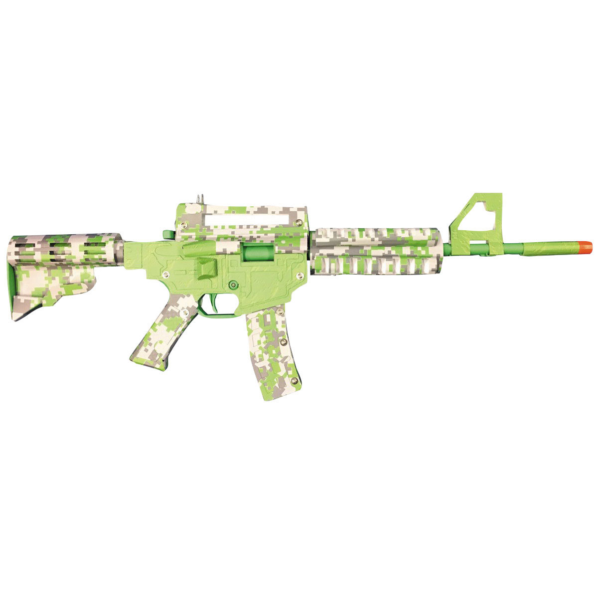 Cechy karabinu Paper Shooters Green Spit:Karabin Paper Shooters Green Spit jest wykonany z polimeru oraz elementów kartonowych, które przy użyciu kleju możemy łączyć i modyfikować, nadając zabawce ostateczną formę. Model wykorzystuje magazynki oraz atrapy łusek dla zwiększenia realizmu, i wymaga każdorazowego przeładowania w celu ekstrakcji łuski.
