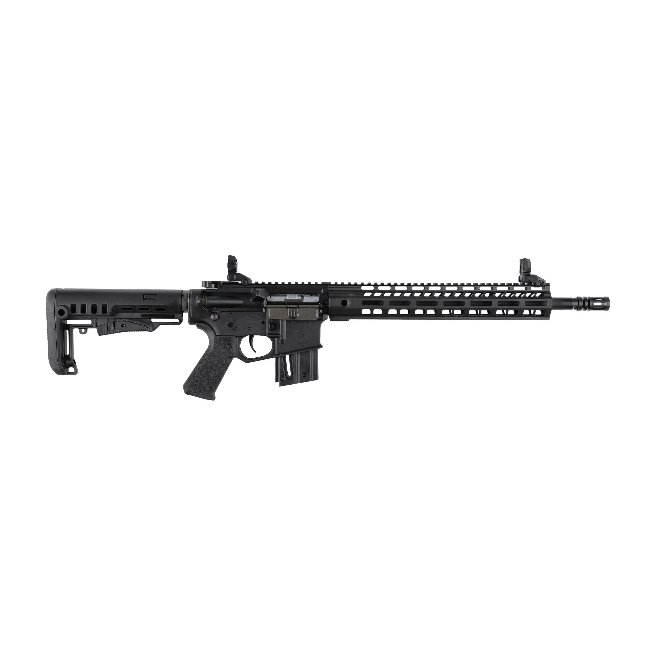 Hämmerli TAC R1 22 kal. .22 LR to karabinek sportowy bocznego zapłonu, wyposażony w pływającą lufę o długości 16", regulowany system gazowy, aluminiowe łoże M-Lok oraz polimerowe przyrządy celownicze typu flip-up.