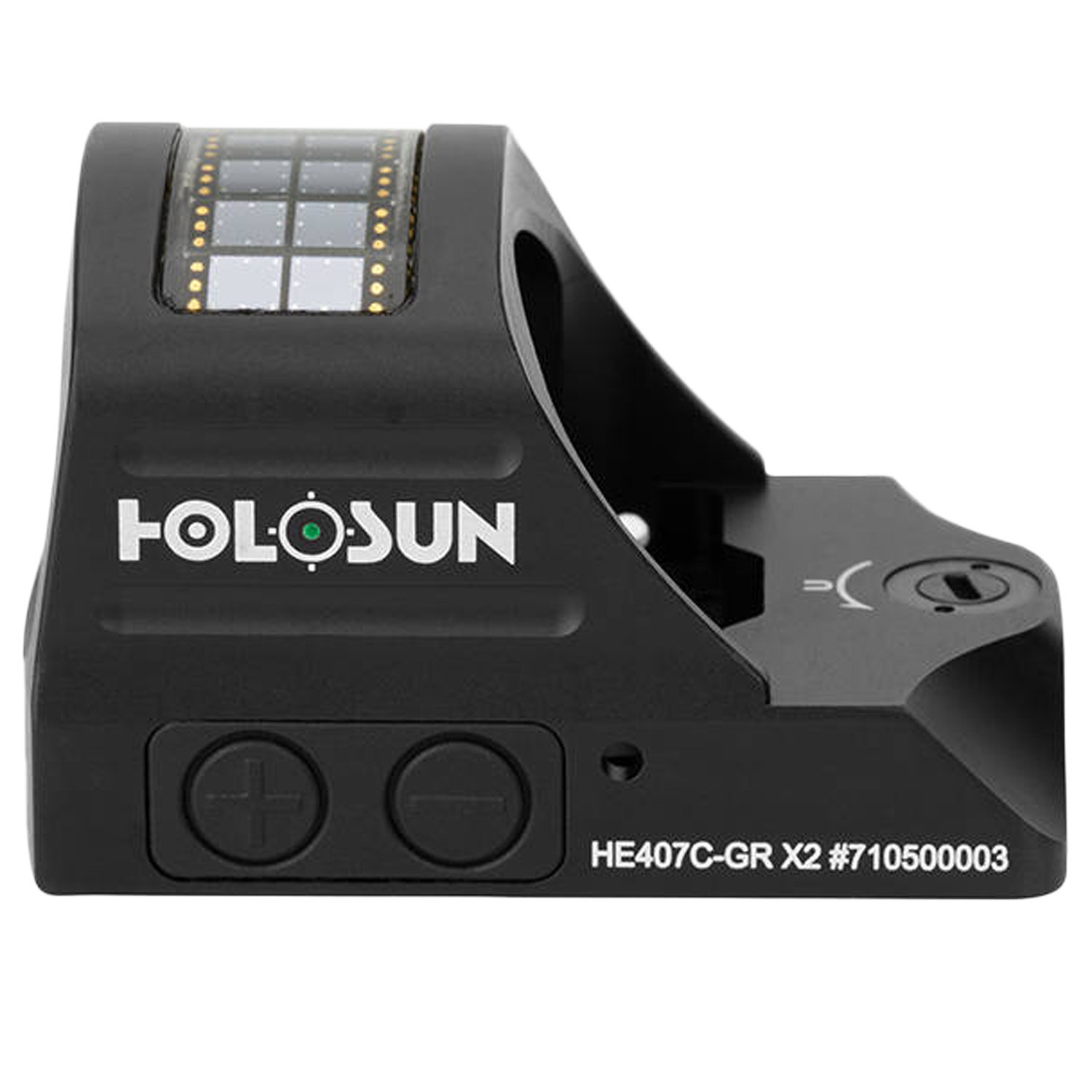 Holosun Micro Red Dot HS407C X2 to zmodernizowana wersja popularnego kolimatora, w którym zastosowano zasilanie słoneczne Solar Failsafe, system oszczędzania baterii Shake Awake oraz znak celowniczy 2 MOA. Wersja wyposażona w zieloną kropkę o zwiększonym kontraście.