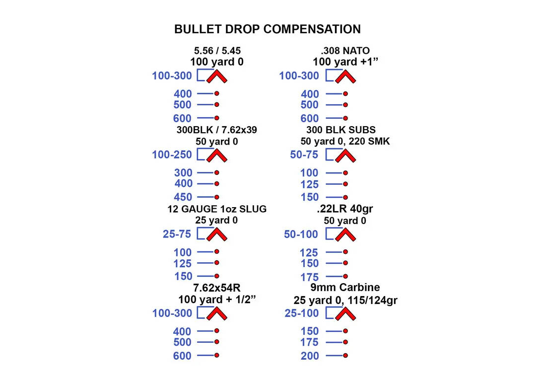 W komplecie znajduje się wysoki montaż (1/3 co-witness) montaż na szynę Picatinny przeznaczony głównie do karabinków i niski zalecany do strzelb i karabinów z rodziny AK.