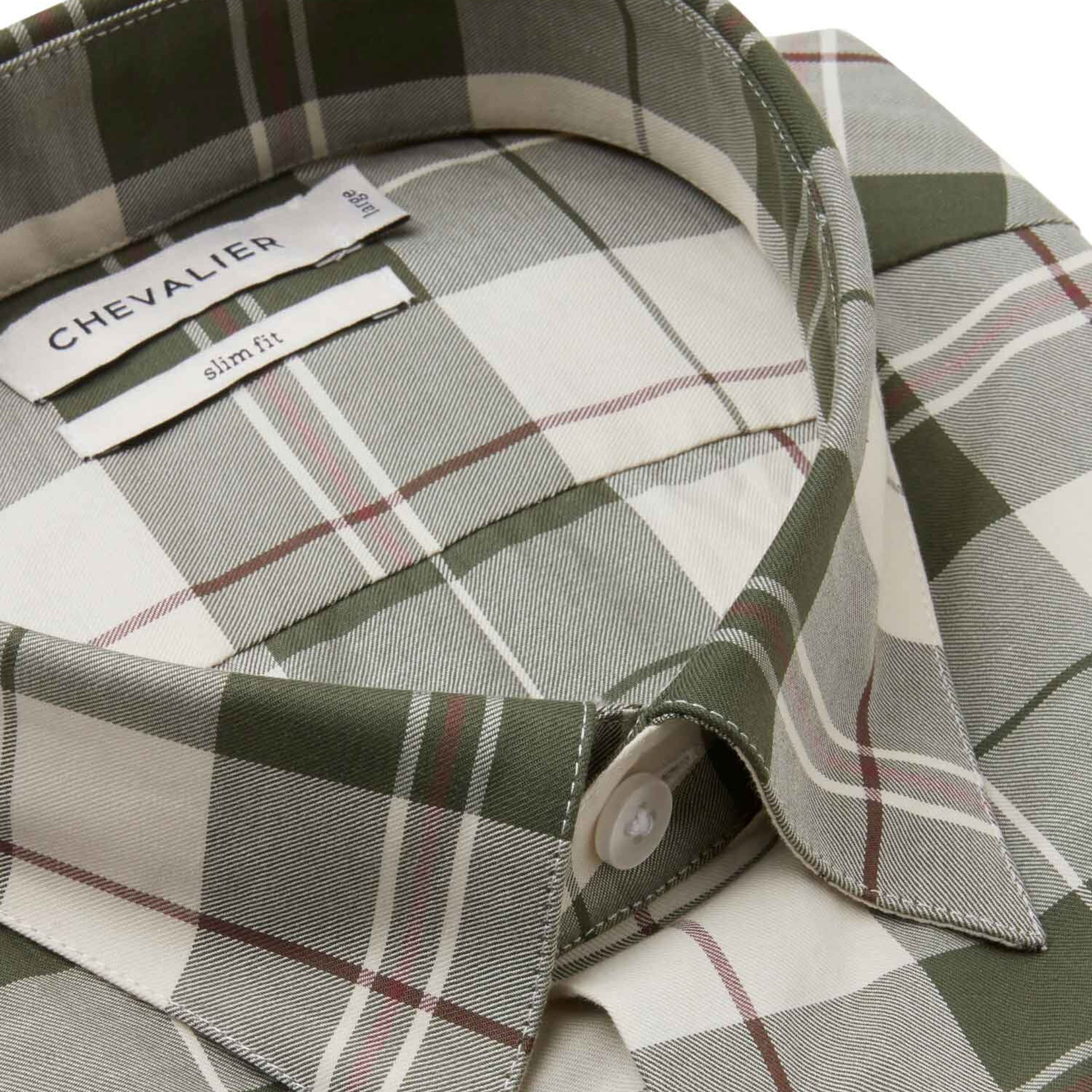 Chevalier Carlton to wytrzymała, męska koszula w kratę. Wykonana z mocnej tkaniny bawełnianej wzbogaconej domieszką elastanu. Materiał jest miękki i wygodny, oddycha, a przy tym elastyczna. Tkanina jest merceryzowana, co nadaje koszuli dodatkowego połysku i miękkości, sprawia również, że jest łatwa w pielęgnacji.