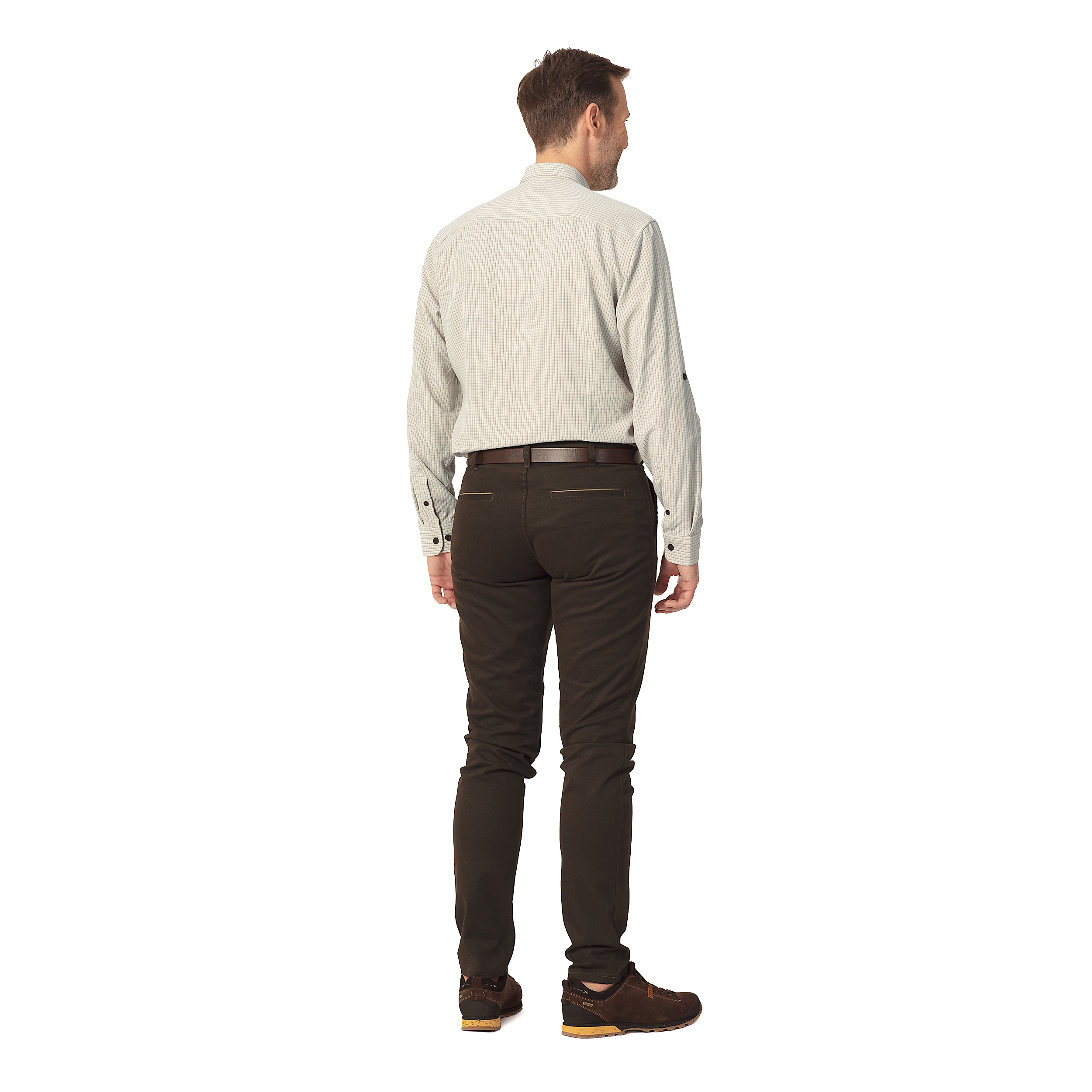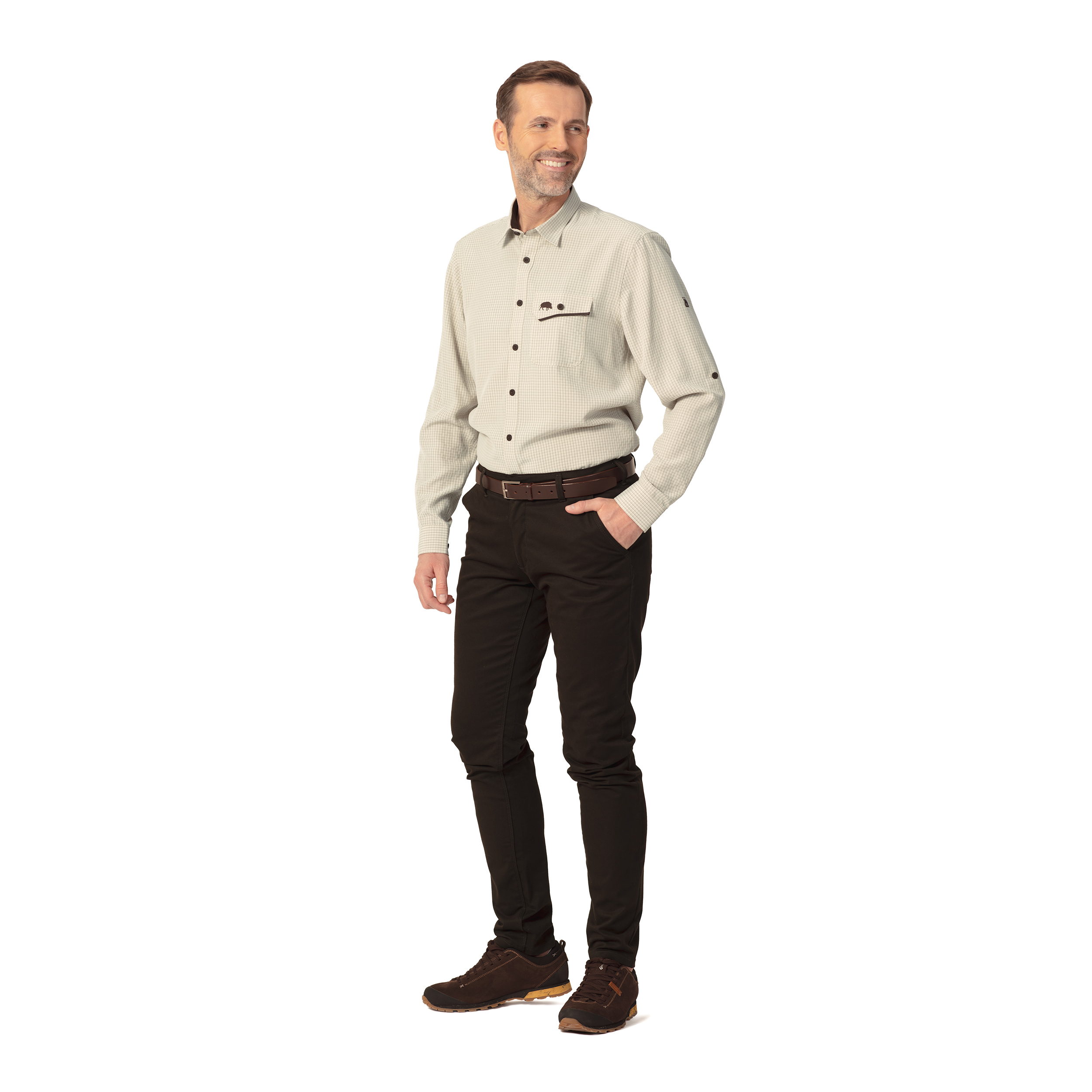 Koszula myśliwska Tagart Boar ma dopasowany krój typu slim, krótki rękaw, kołnierzyk typu kent wykończony od wewnątrz zameszek oraz kieszeń na piersi zapinaną na guzik. Koszula ma ponadczasową kratkę w beżowym kolorze, dlatego może być noszona jako element stroju codziennego, turystycznego, a także do pracy.