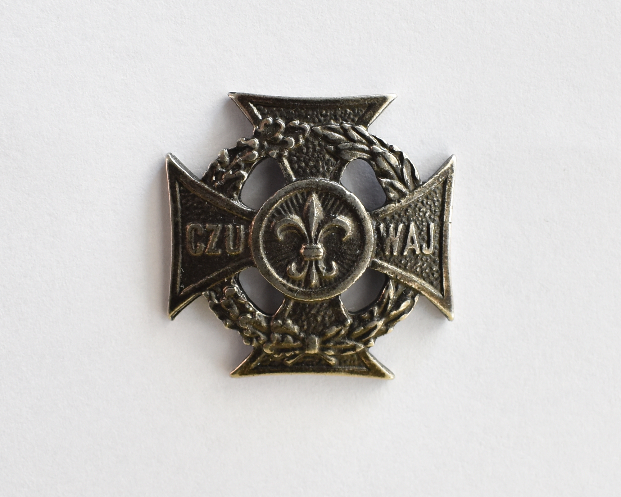 Regulaminowy krzyż harcerski z nakrętką. Standardowe wyposażenie harcerza. Krzyż wykonany został z metalu.