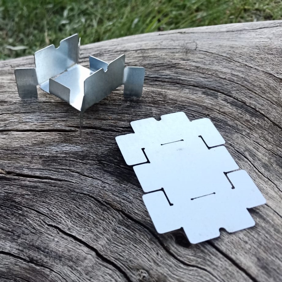 Jednorazowa kuchenka survivalowa Piran Sparky to ultralekkie rozwiązanie na okazjonalne wypady w teren. Wykonane z cienkiej blachy palenisko zostało przystosowane do wykorzystywania paliwa w formie tabletek, a jego forma doskonale sprawdzi się do podgrzania turystycznej konserwy lub tacek spotykanych w racjach żywnościowych. W formie rozłożonej kuchenka to jedynie cienki arkusz stali, który z łatwością umieścimy w kieszeni cargo lub zestawie SERE. Po złożeniu, a raczej odpowiednim zagięciu otrzymujemy stabilne palenisko, które pozwoli nam podgrzać posiłek niezależnie od miejsca, w którym się znajdujemy.