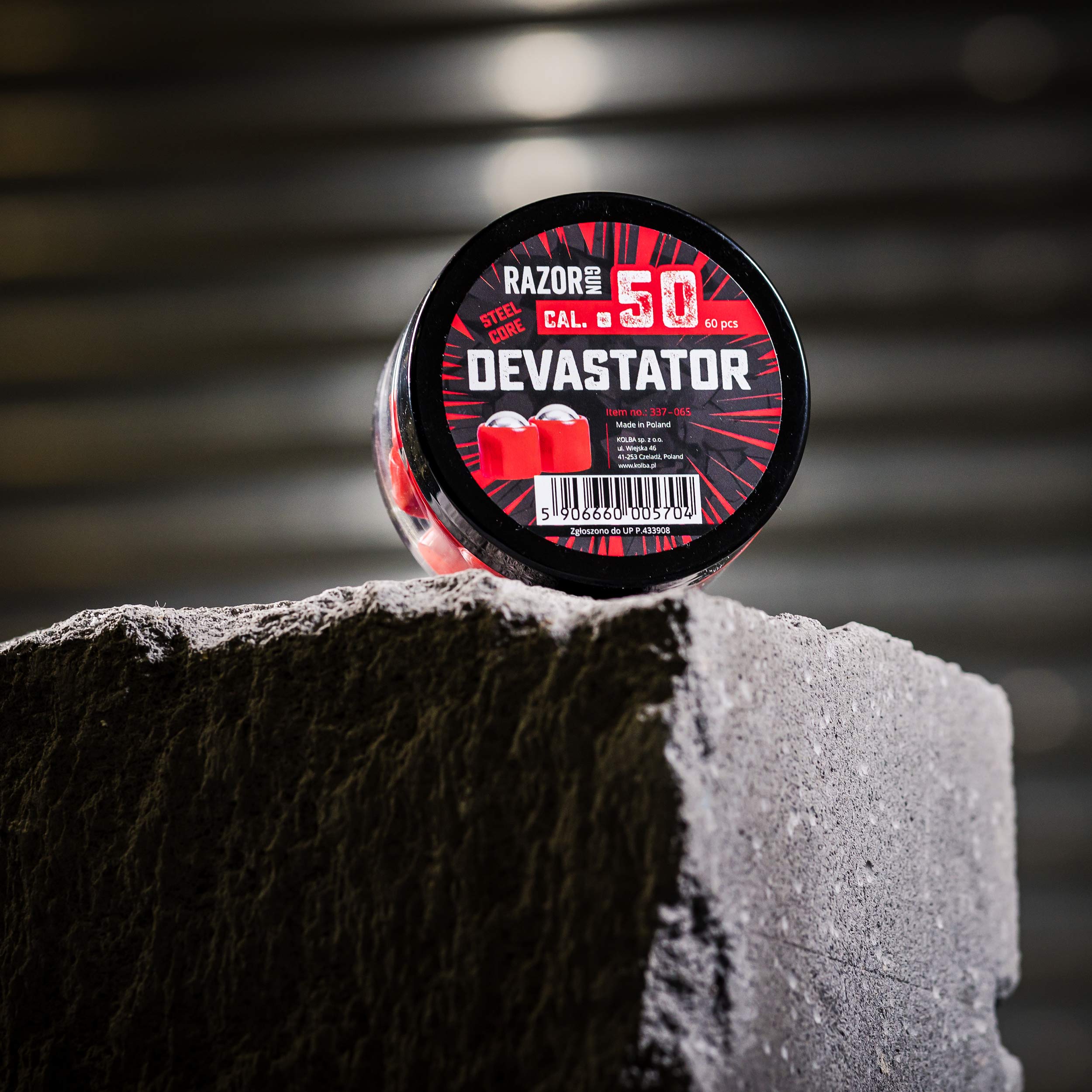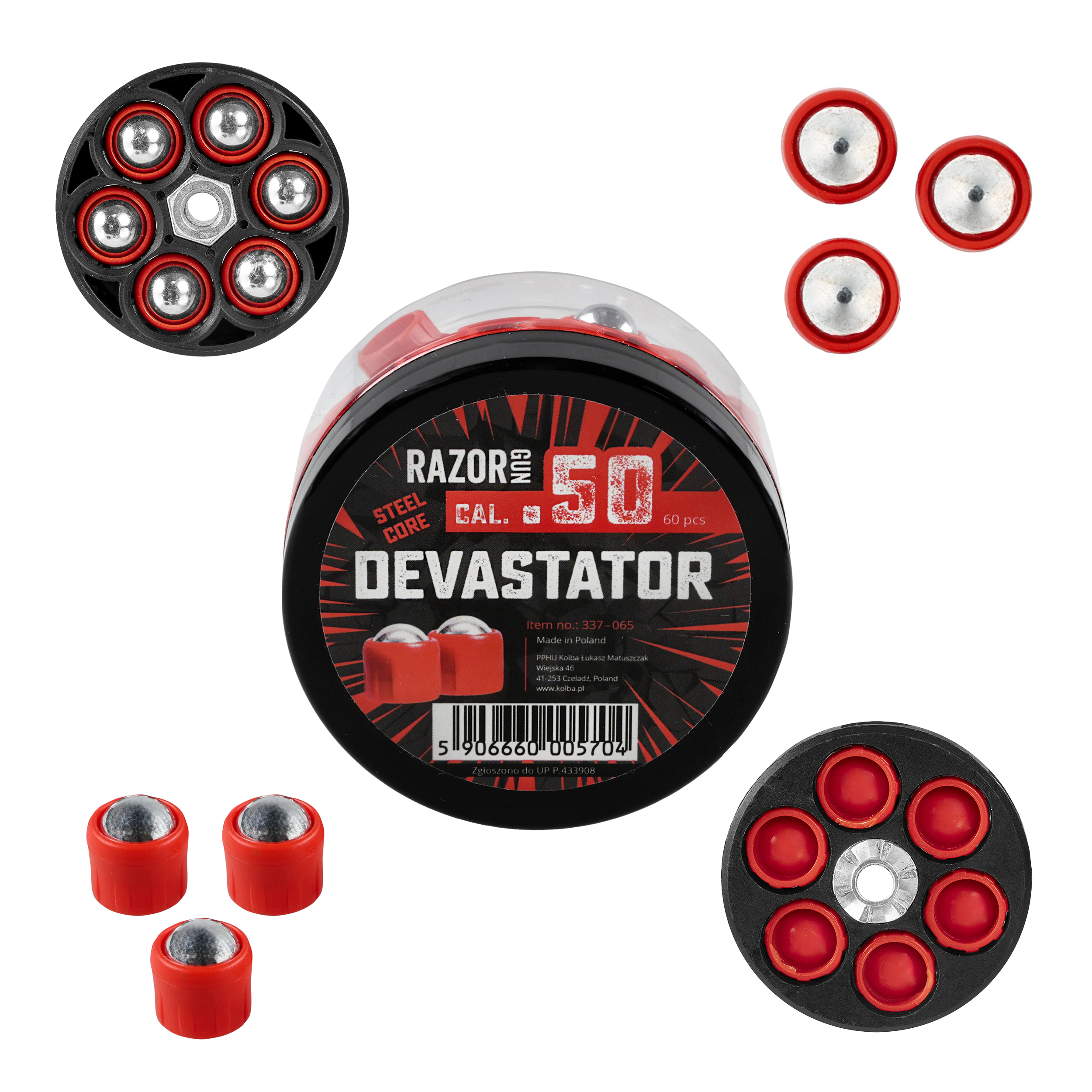 RazorGun Steel Core Devastator kal. .50 60 szt. został wyprodukowany w Polsce. Produkt zgłoszono do Urzędu Patentowego P.433908.