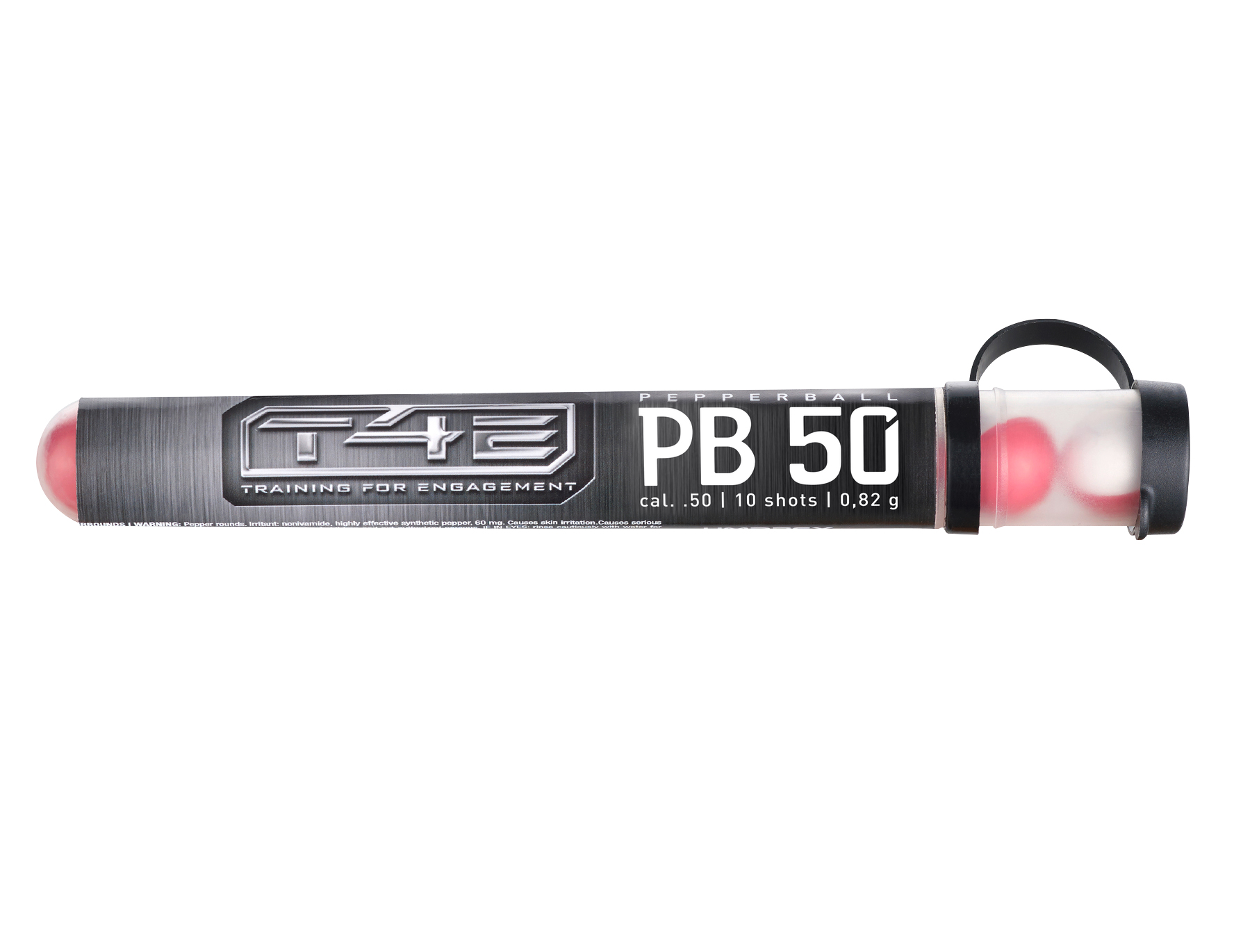 Kule pieprzowe o masie 0,82 g mogą być wykorzystywane we wszystkich markerach treningowych T4E kalibru .50. Twarda skorupka kulek pęka dopiero po trafieniu w napastnika lub twardą powierzchnię uwalniając obłok syntetycznego pudru pieprzowego o bardzo wysokim współczynniku SHU.