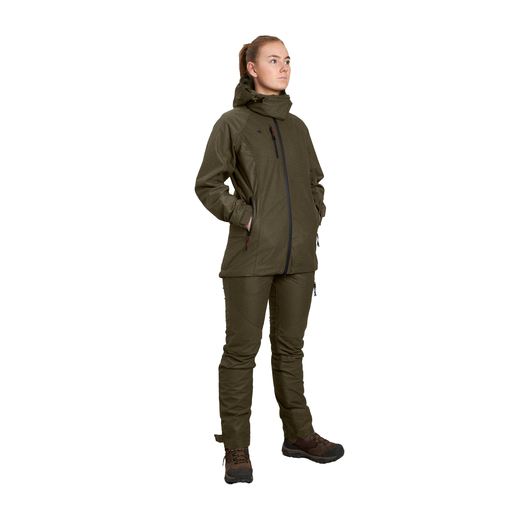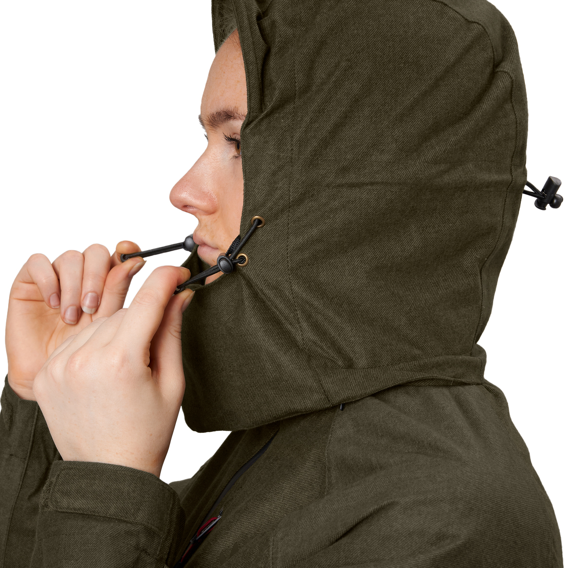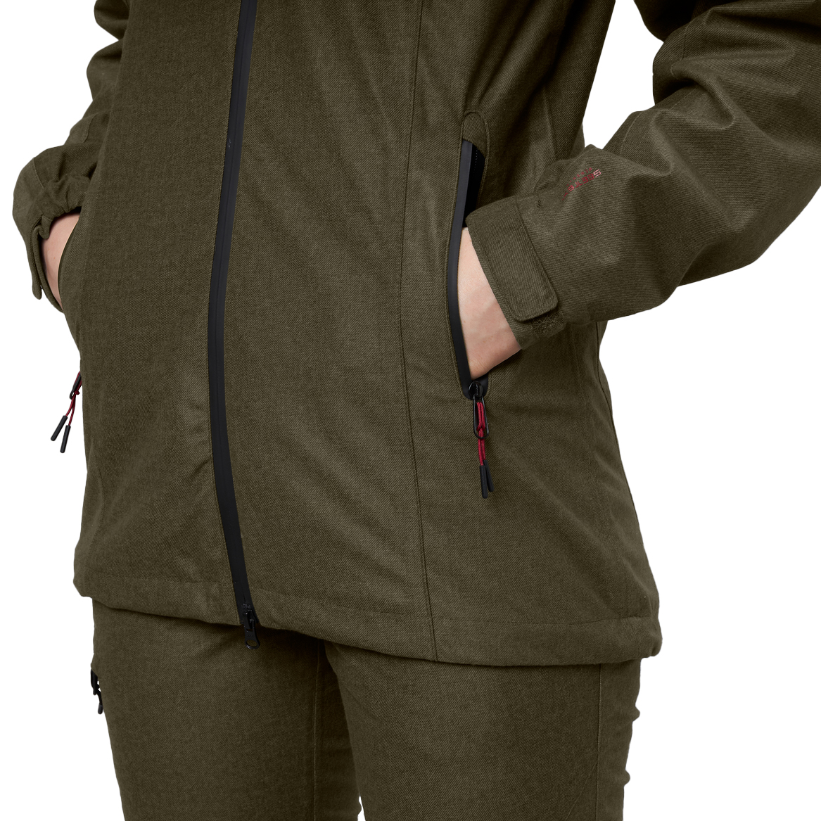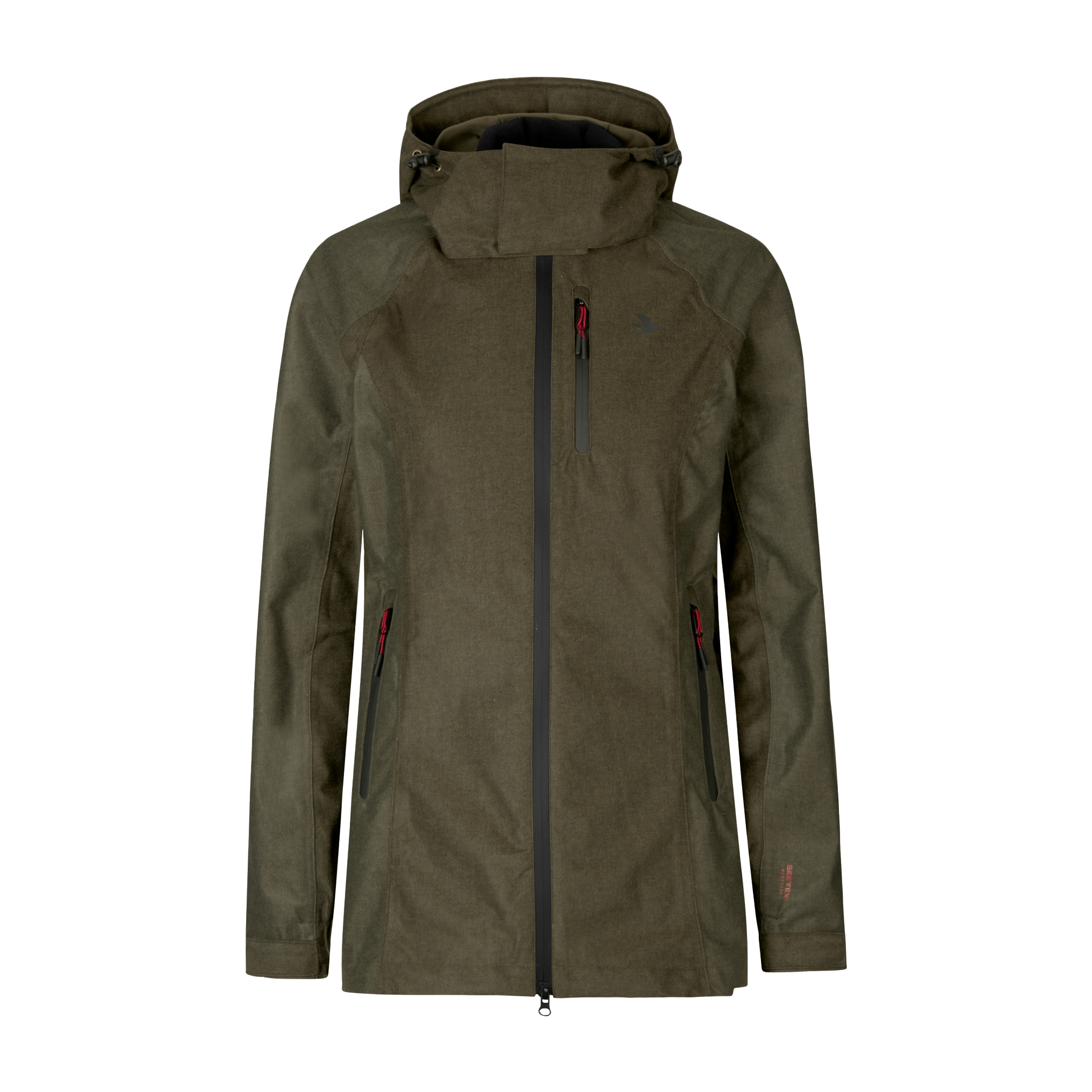Seeland Avail to klasyczna kurtka damska wykonana z zabarwionego na zielono, szczotkowanego i nieszeleszczącego poliestru. Dzięki dwuwarstwowej membranie Seetex® 10.000 mm chroni przed wodą, jest też nieprzewiewna, a przy tym oddychająca. W efekcie zapobiega nadmiernemu poceniu, zapewniając jednocześnie komfort termiczny i ochronę przed deszczem.