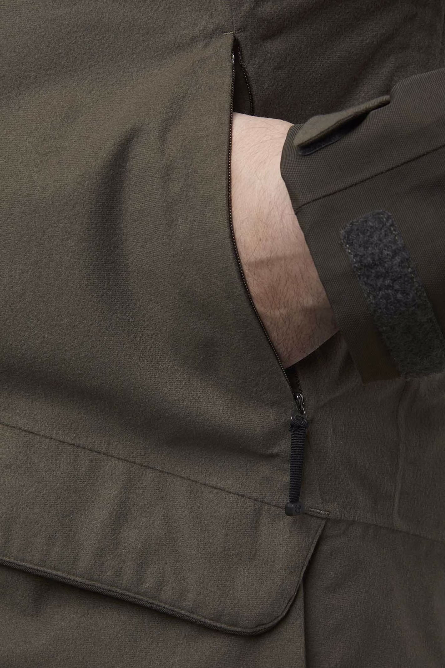 Aby zapewnić pełną kontrolę nad perspirowaną przez ciało wilgocią, producent umieścił na bokach suwaki wentylacyjne, pozwalające na odprowadzenie w podczas wysokiej aktywności. W przedniej części kurtki znajdują się dwie obszerne kieszenie przeznaczone do przenoszenia amunicji lub drobnych akcesoriów. Kurtka ma pojemny kaptur z możliwością dopasowania do głowy, wzmocnienia na ramionach i łokciach oraz dwukierunkowy zamek kryty wiatroszczelną patką.