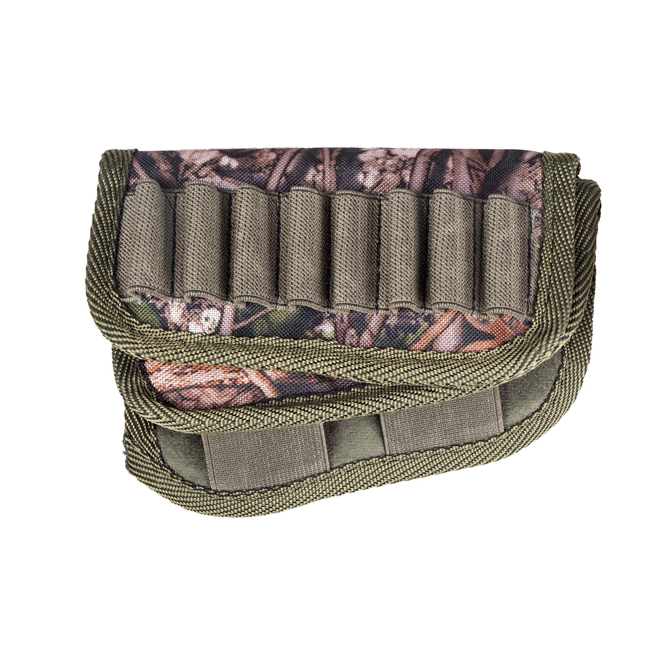 Elastyczna ładownica na kolbę wykonana z codury w wzór kamuflażu. Rzepy umieszczone na ładownicy umożliwiają błyskawiczną wymianę zasobnika na amunicję. Kompelt posiada jeden odpinany zasobniki na amunicję w postaci 4 śruty i 3 kule.