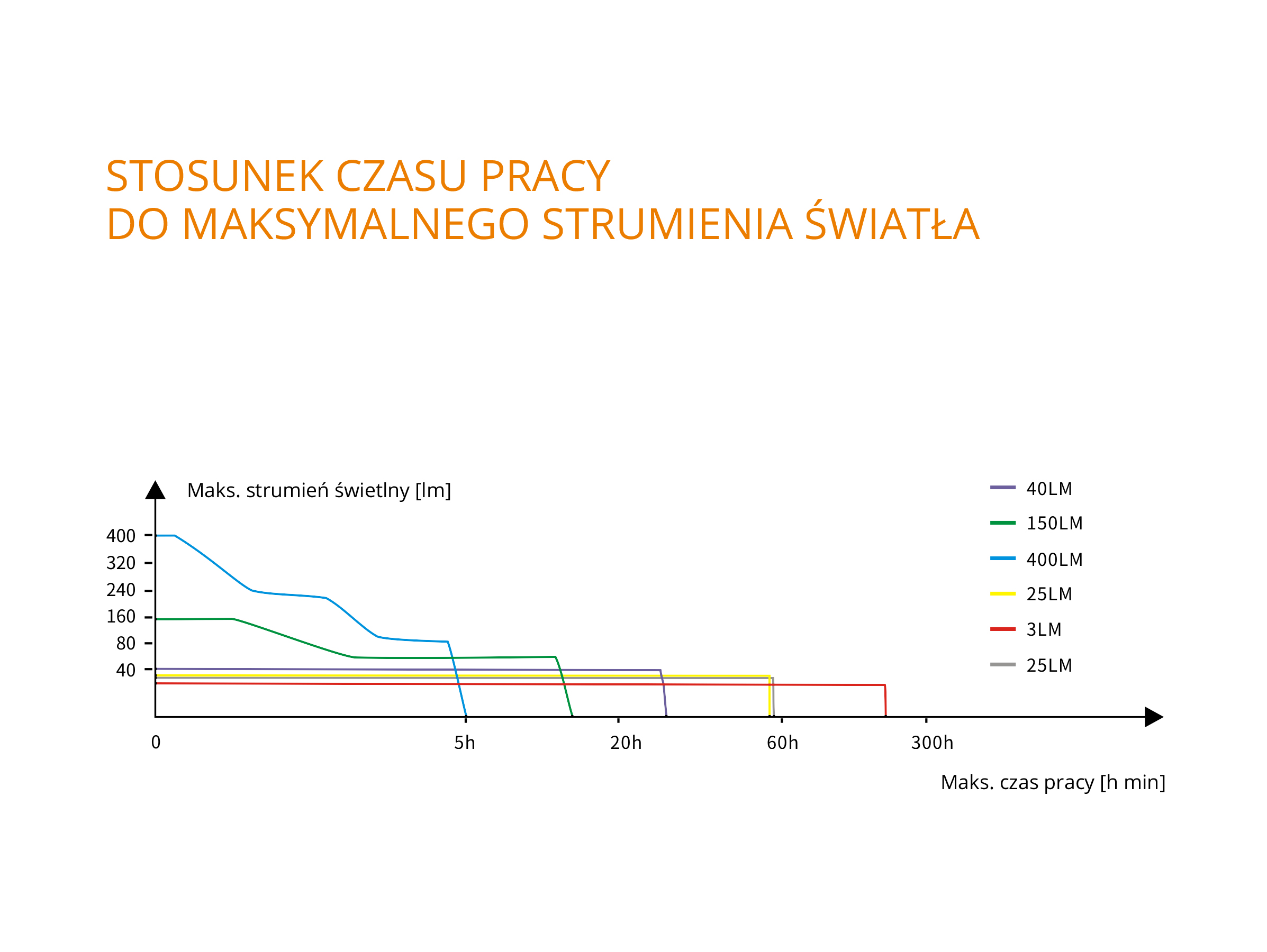 | Dioda | Typ | Tryb | Maks. moc [lm] | Maks. czas pracy [h min] | Maks. zasięg [m] |