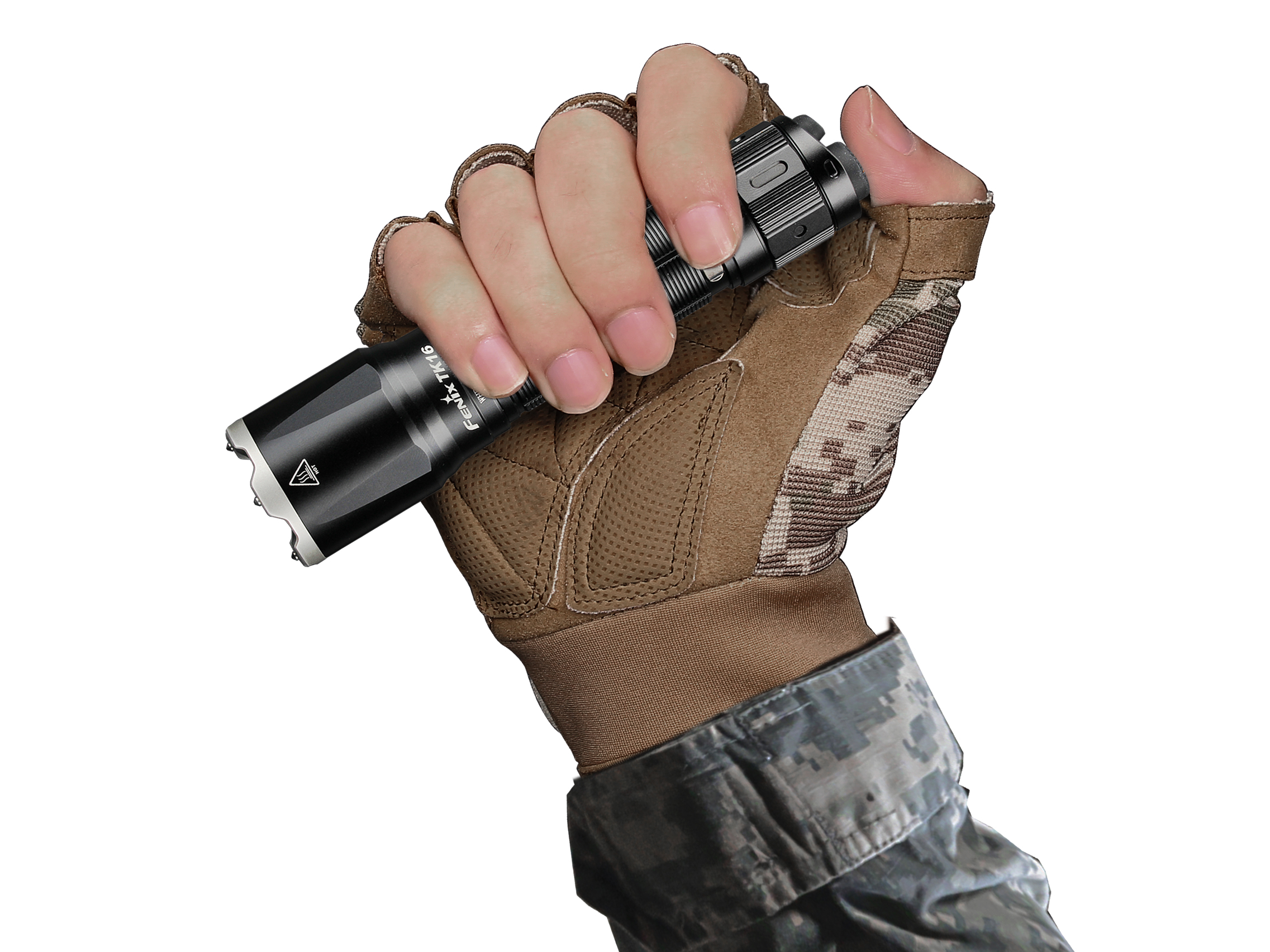 Przyciski są usytuowane blisko siebie i łatwo wyczuwalne nawet w rękawicy, dzięki czemu latarkę można wygodnie i obsługiwać jedną ręką. Taka funkcjonalność powoduje, że latarka TK16 V2.0 jest prosta i przyjazna w użytkowaniu, dlatego świetnie sprawdzi się w działaniach służb mundurowych.