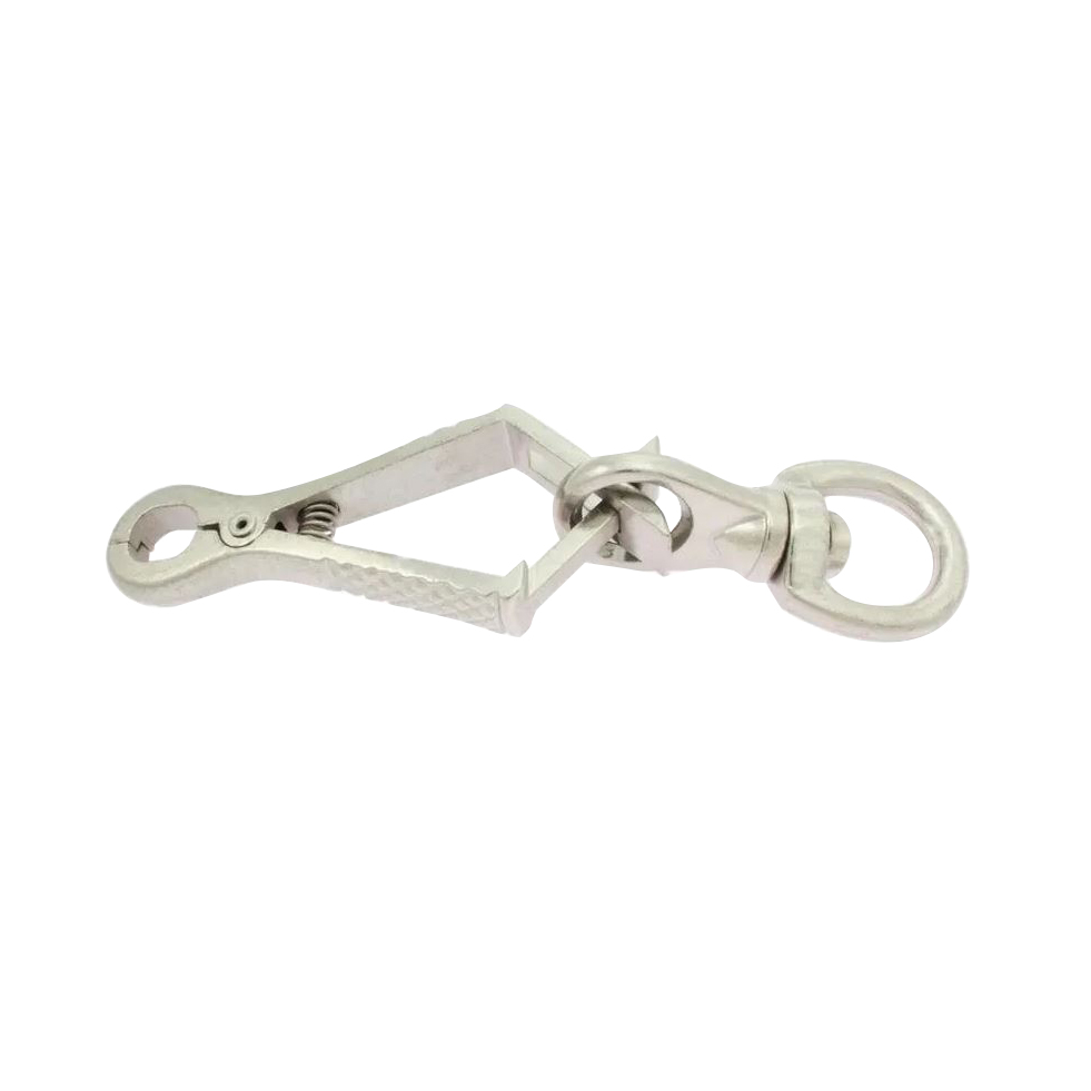 Smycz treningowa 4wild 5 m na zakończeniu ma metalowy karabińczyk z krętlikiem pokryty chromowaną powłoką, która nie wywołuje reakcji alergicznych.