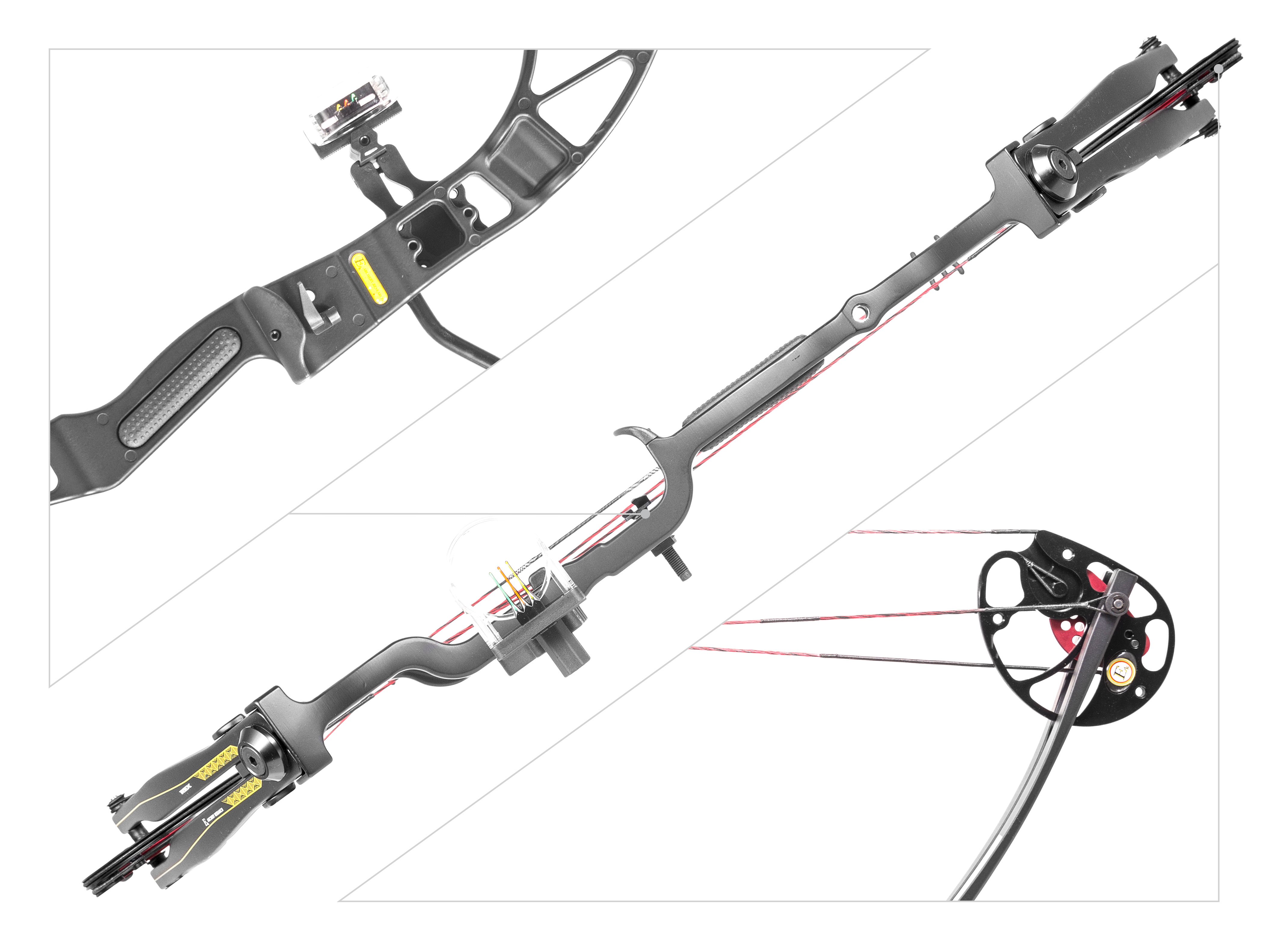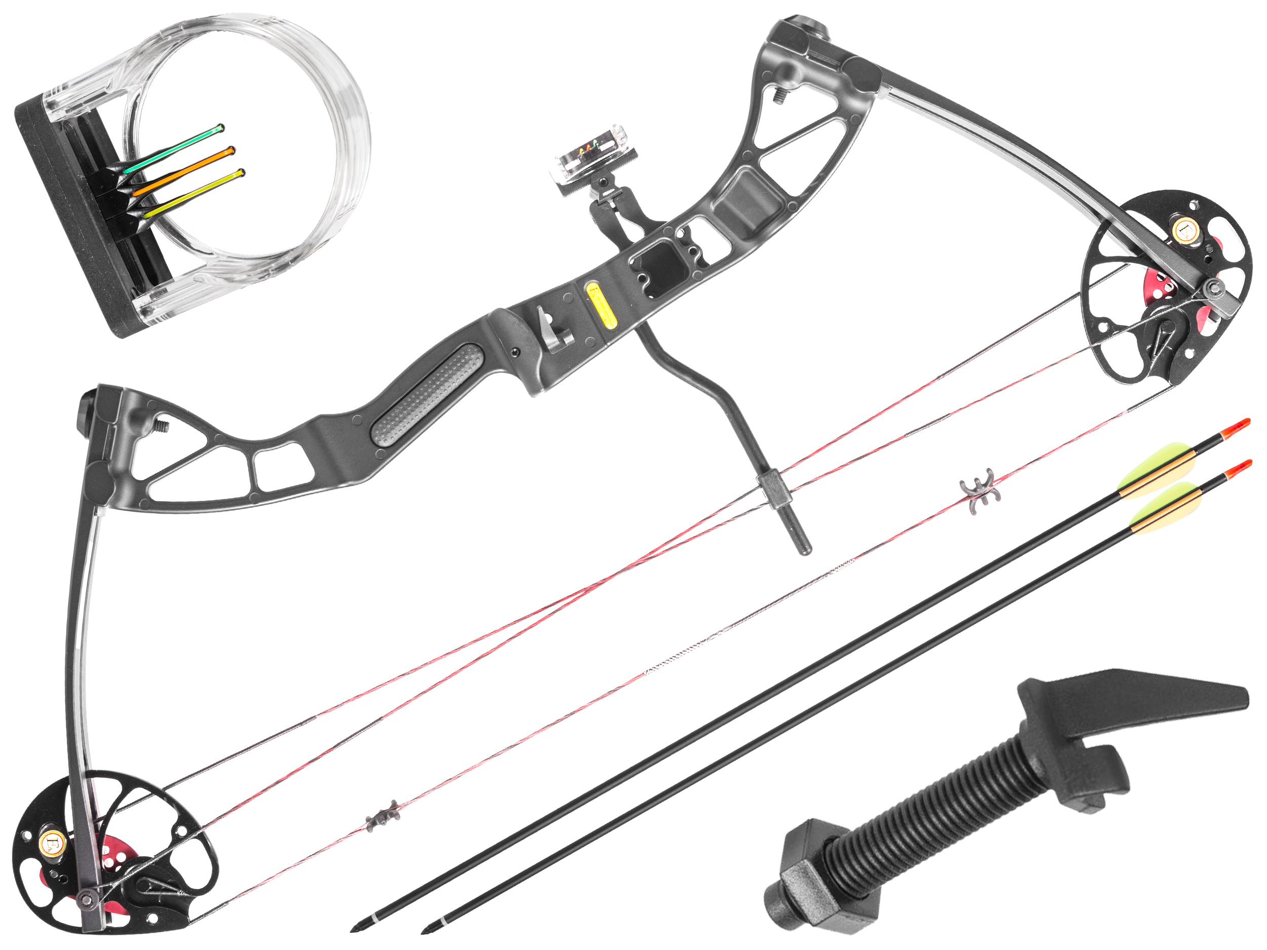 Łuk ten posiada gwinty do montażu podstawki, celownika oraz stabilizatora centralnego. Akcesoria dołączone do zestawu umożliwiają natychmiatowe rozpoczęcie przygody z łucznictwem.