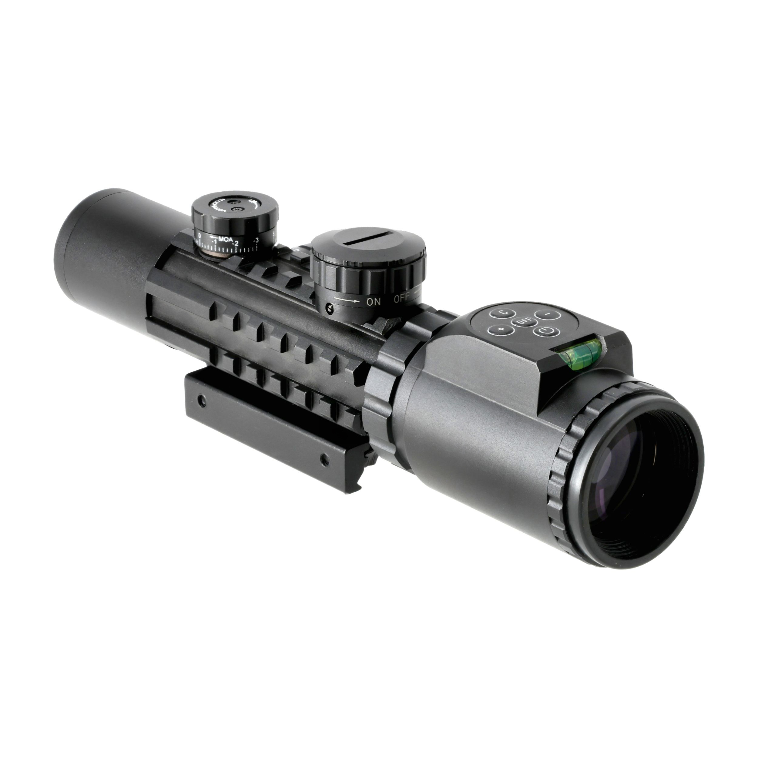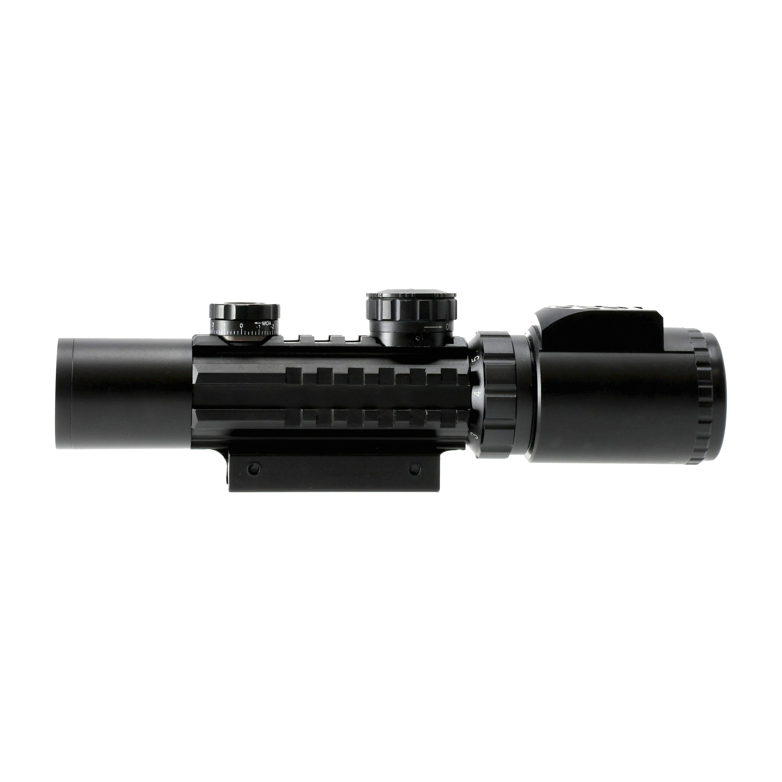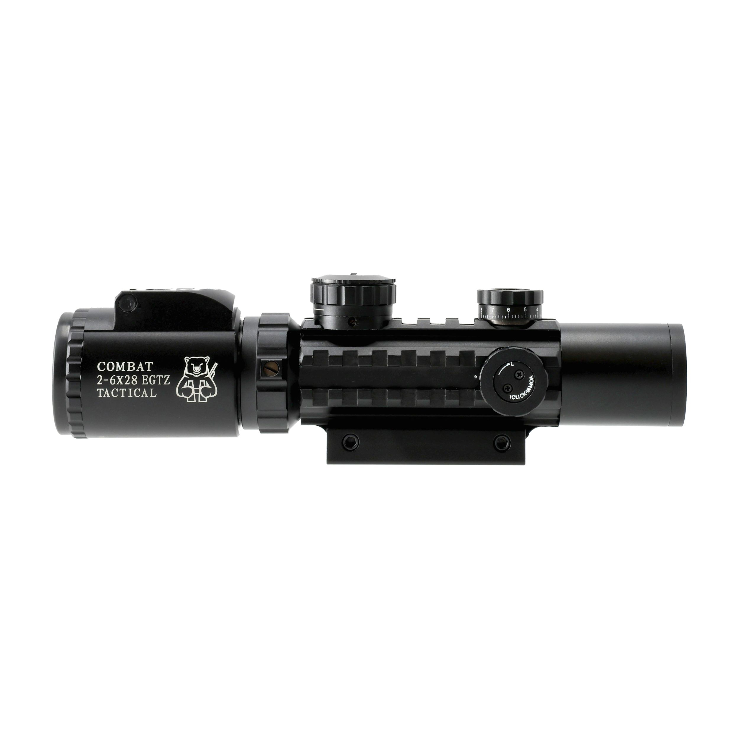 Marka Combat oferuje budżetowe przyrządy celownicze tworzone z myślą o początkujących graczach ASG. Prosta konstrukcja pozwala zapoznać się ze specyfiką użytkowania optyki na broni, jednocześnie nie nadwyrężając budżetu użytkownika. Wszechstronne powiększenie pozwala na korzystanie zarówno na bliskich jak i średnich dystansach. Luneta została wyposażona w podświetlenie centralnego obszaru krzyża. Sterowanie odbywa się za pomocą panelu, umieszczonego w pobliżu okularu.