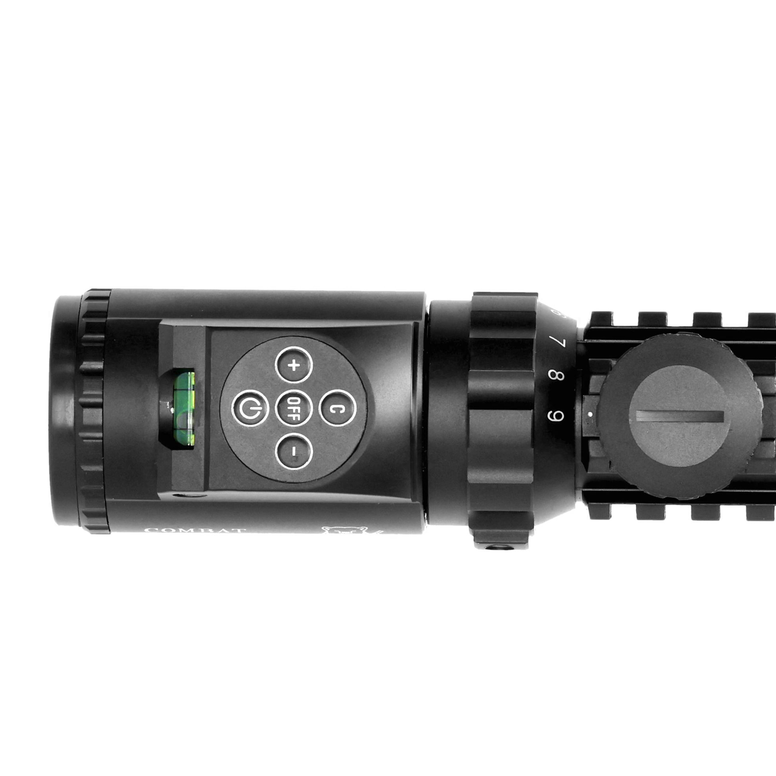 Marka Combat oferuje budżetowe przyrządy celownicze tworzone z myślą o początkujących graczach ASG. Prosta konstrukcja pozwala zapoznać się ze specyfiką użytkowania optyki na broni, jednocześnie nie nadwyrężając budżetu użytkownika. Wszechstronne powiększenie pozwala na korzystanie zarówno na bliskich jak i średnich dystansach. Luneta została wyposażona w podświetlenie centralnego obszaru krzyża. Sterowanie odbywa się za pomocą panelu, umieszczonego w pobliżu okularu.