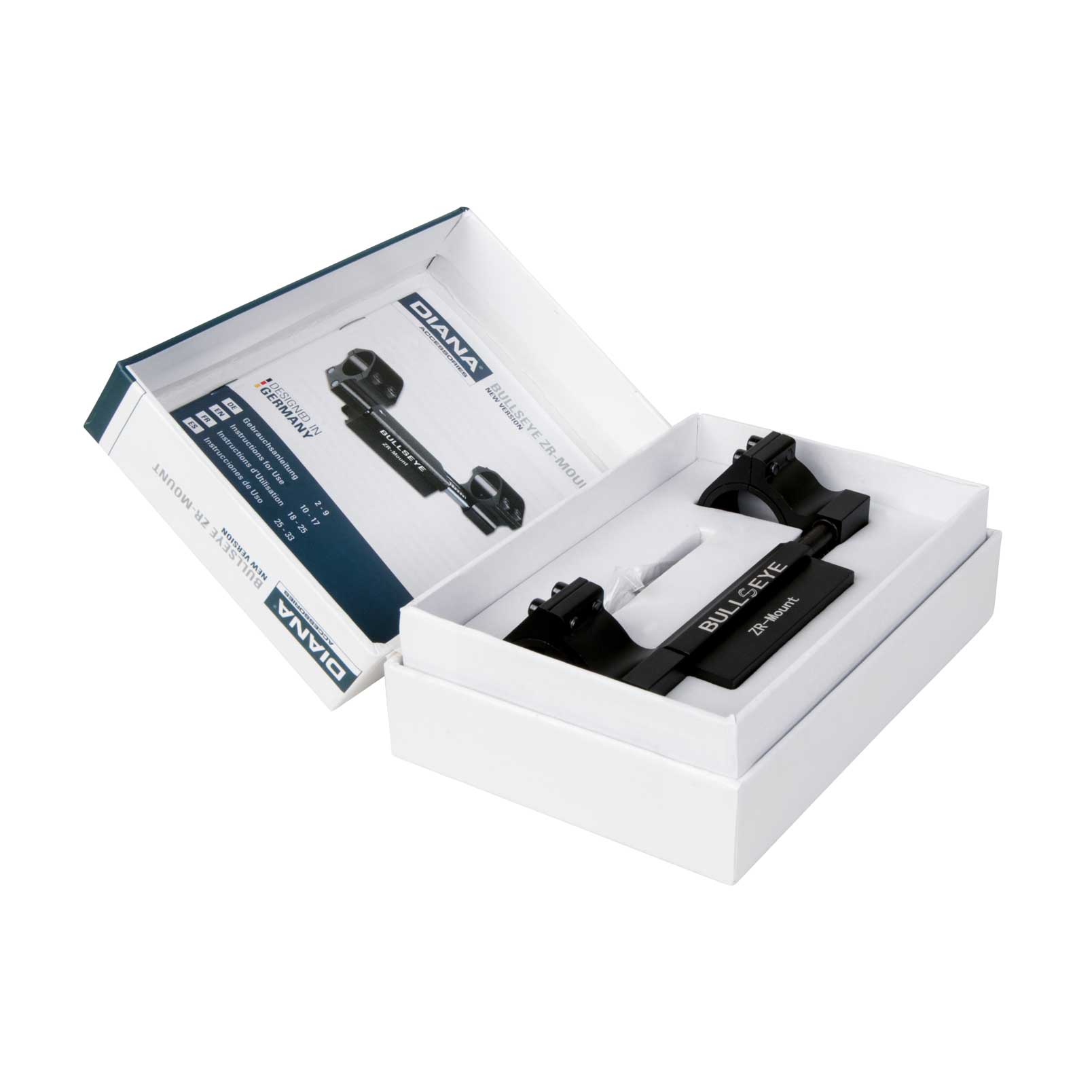 Dodatkową cechą montażu jest „mikroskos” o wartości 1,016 mm. Dzięki wkładkom montaż Diana ZR można wykorzystywać do lunety o calowym lub 30 mm tubusie. Dzięki montażowi Diana ZR możemy bezpiecznie korzystać z celownika nawet na mocnych wiatrówkach sprężynowych oraz karabinkach FAC.