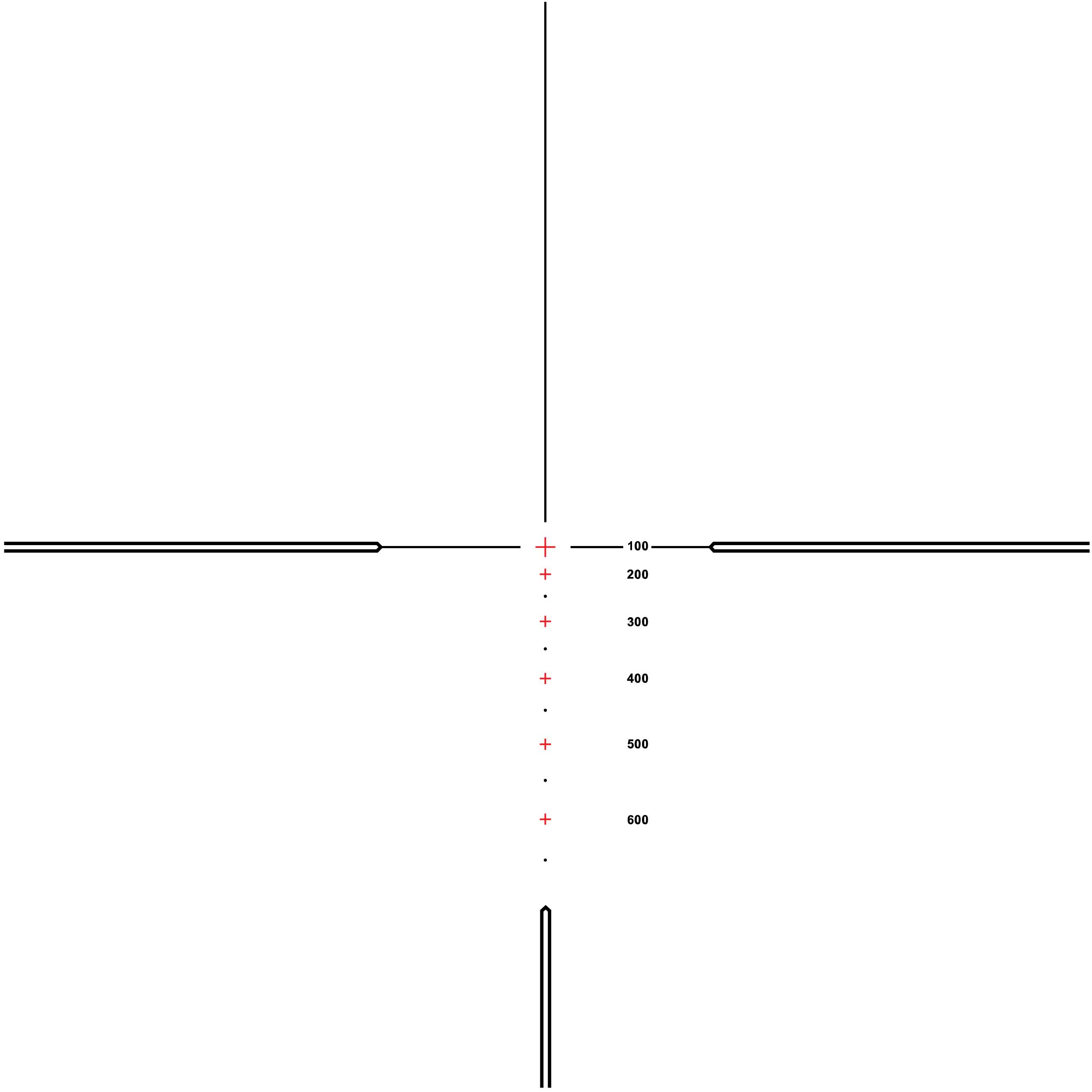 Osadzony w drugim planie krzyż z podświetleniem o siatce dostosowanej do balistyki kalibrów .223 Rem i .308 Win