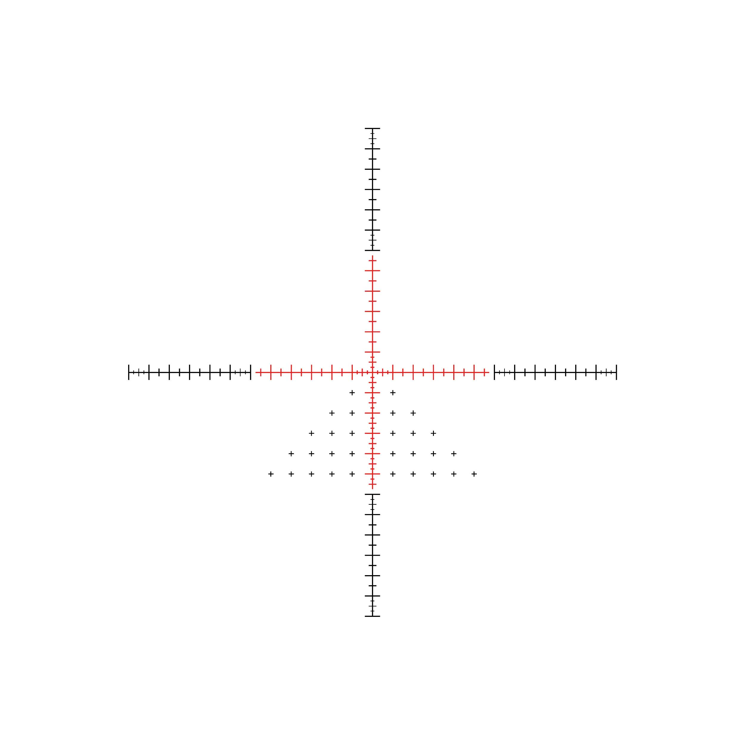Osadzony w pierwszym planie krzyż z podświetleniem o rozbudowanej siatce FFP MOA