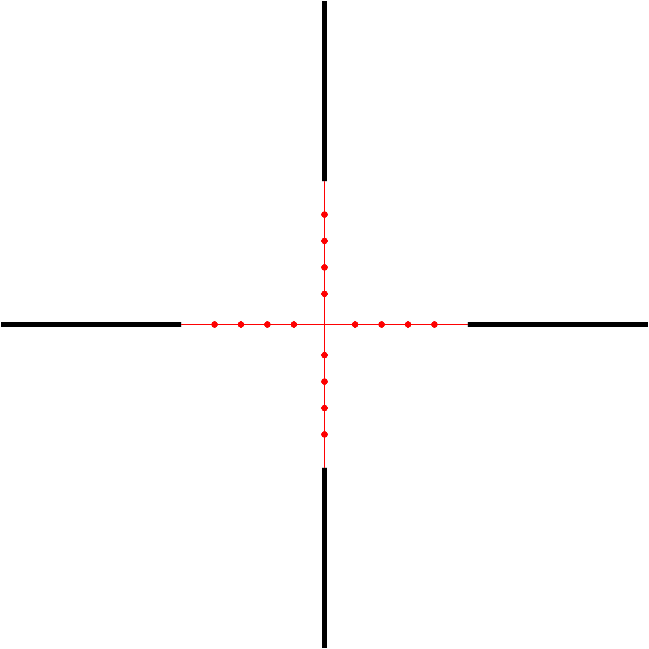 - Osadzony w drugim planie, dwukolorowo podświetlany krzyż o uniwersalnej siatce Mil Dot