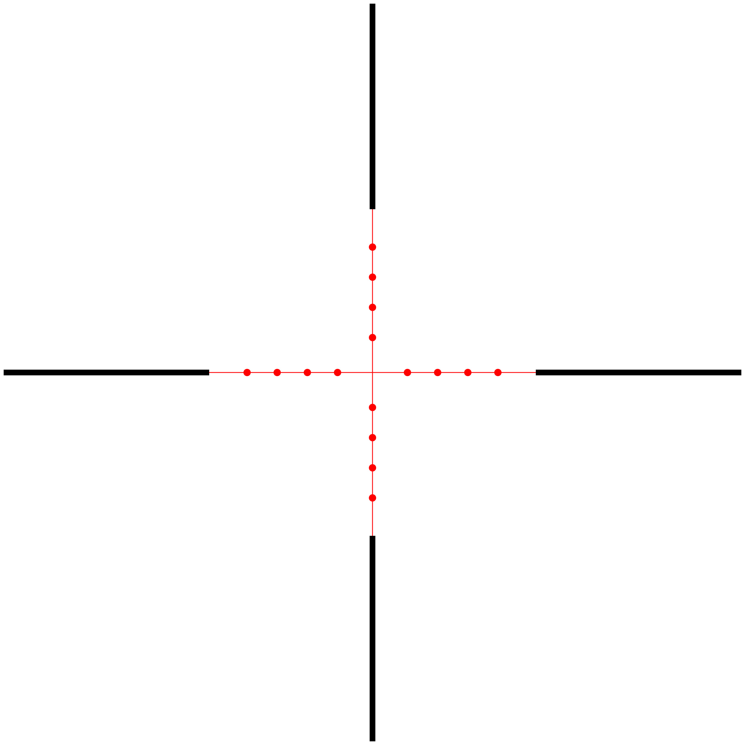 - Osadzony w drugim planie krzyż z podświetleniem o prostej siatce Mil Dot