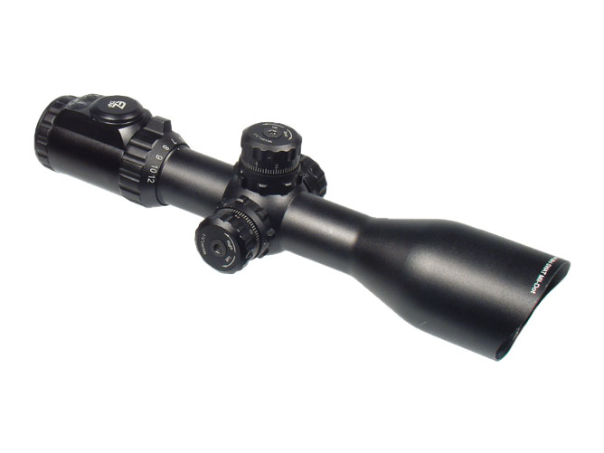 Luneta celownicza Leapers UTG 3-12X44 AO Compact przeznaczona do strzelectwa sportowego, wyposażona w zmienne powiększenie (zoom 3x-12x) oraz wbudowany sunshader. Posiada regulację krzyża w pionie i w poziomie oraz dodatkowo regulację paralaksy. Przesunięcie przy jednym przeskoku pokrętła regulacji krzyża 1/4”/100 yardów. Luneta została wyposażona w podświetlany krzyż MilDot o 7-stopniowej skali regulacji natężenia światła z wyborem 36 wariantów kolorystycznych.