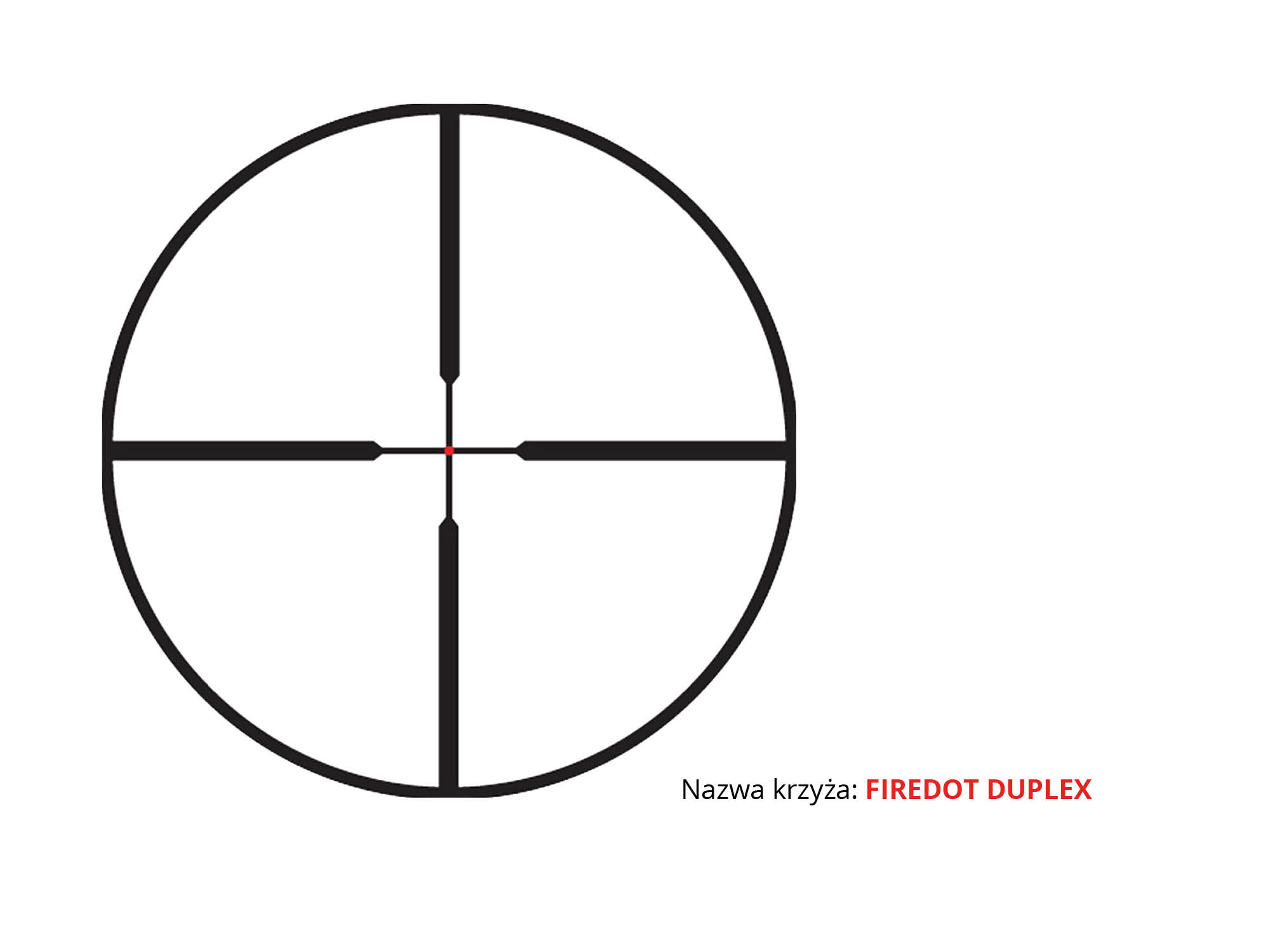 Światłowodowy punkt celowania FireDot automatycznie przenosi wzrok strzelca na środek siatki, dzięki czemu wejście w cel jest szybkie i instynktowne. Regulacji podświetlania (8 poziomów) dokonujemy za pomocą bocznego przycisku Push Button.