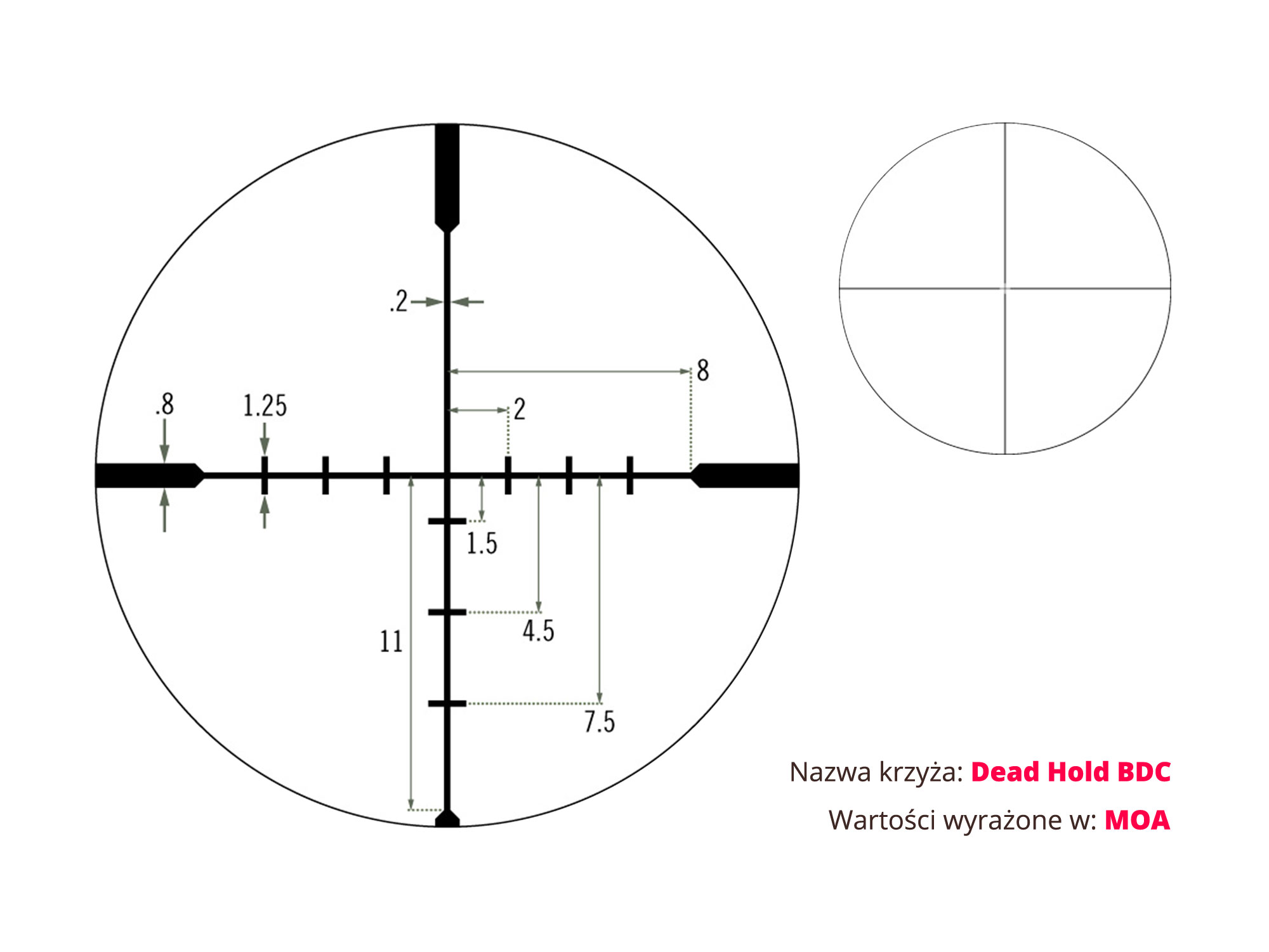 Typ krzyża celowniczego (siatki): V-Plex MOA, Dead-Hold® BDC MOA