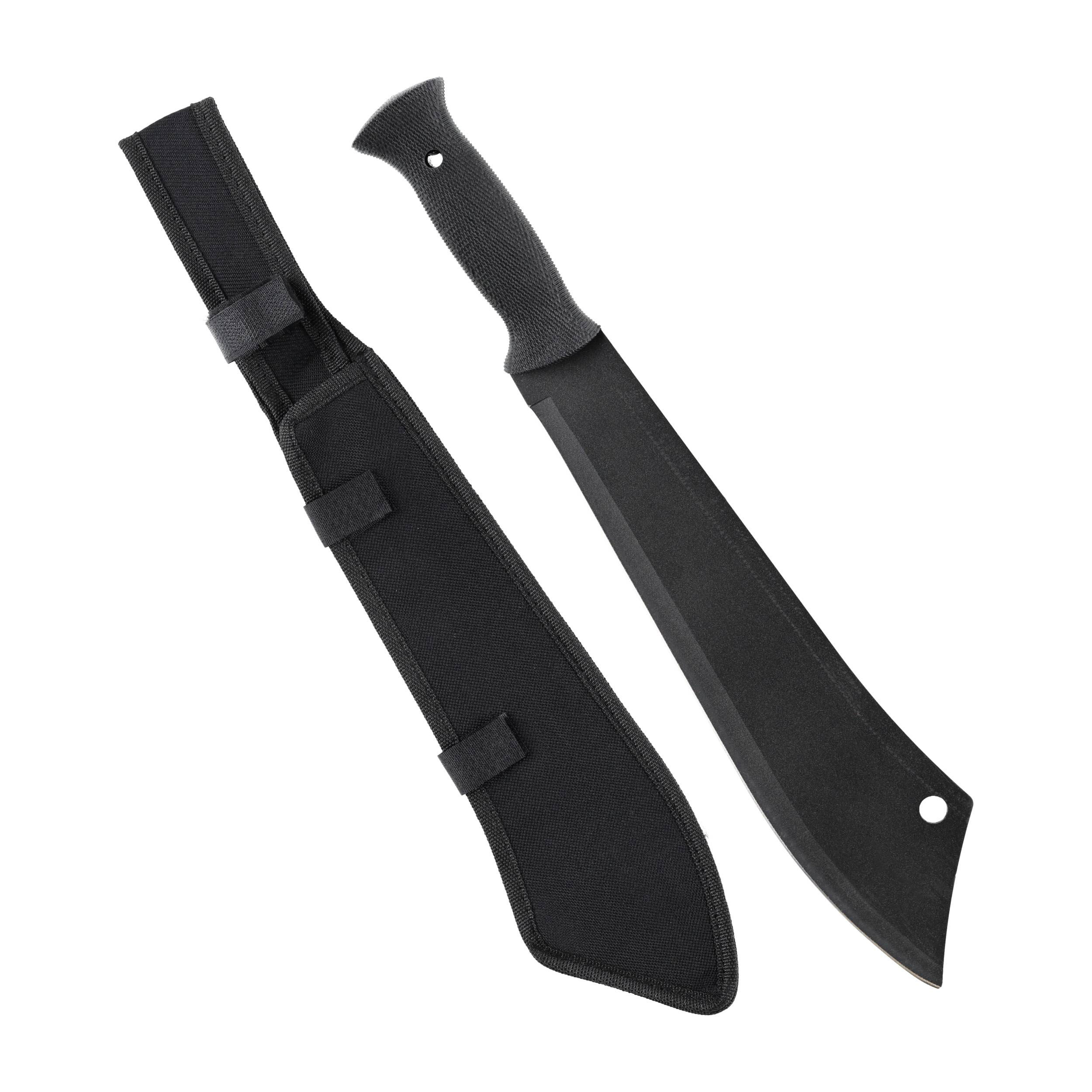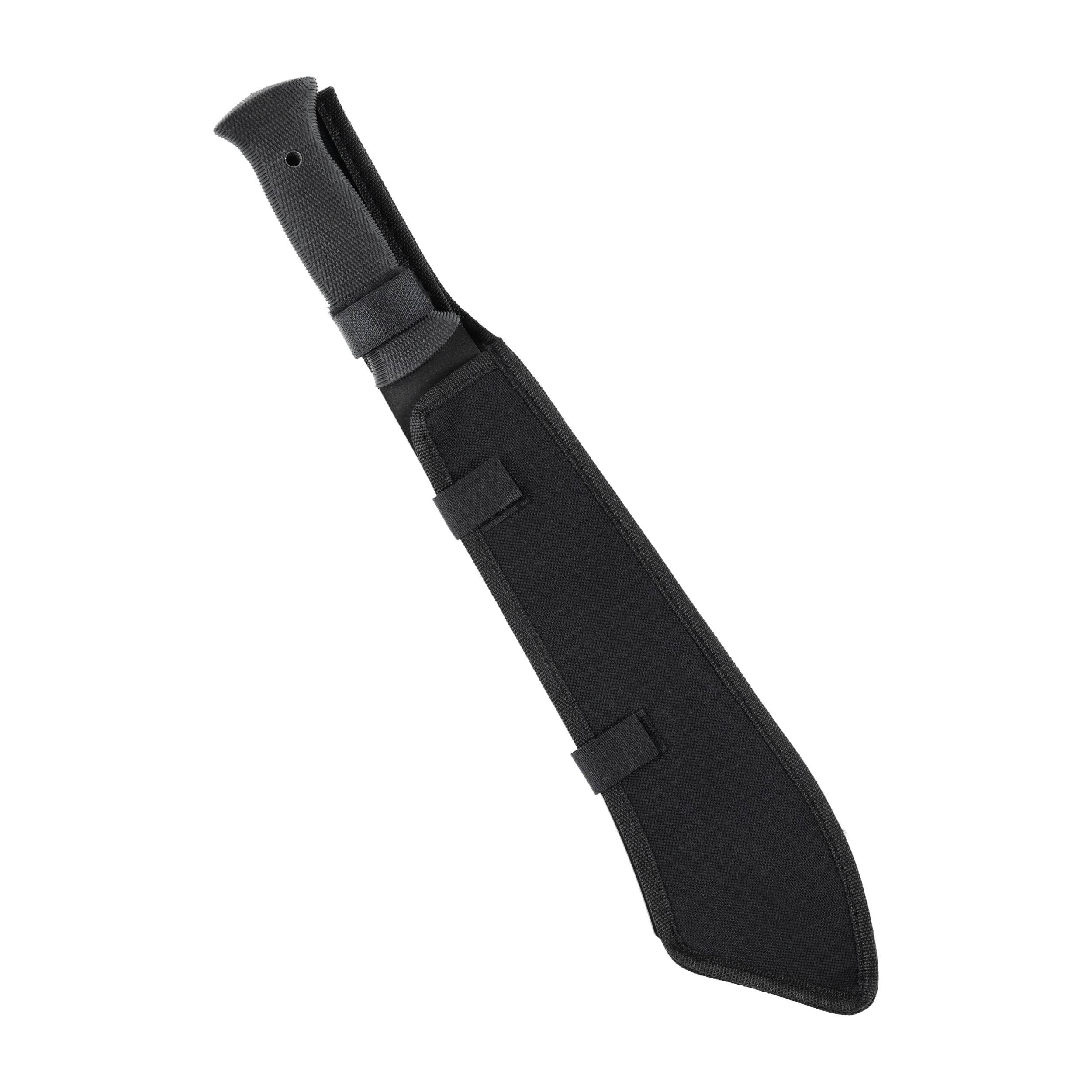 Producent zadbał również o bezpieczeństwo i wygodny transport, dołączając do maczety pokrowiec. Zapinany na klipsy i wyposażony w regulowaną linkę z łatwością da się przytroczyć do plecaka lub przewiesić przez ramię.