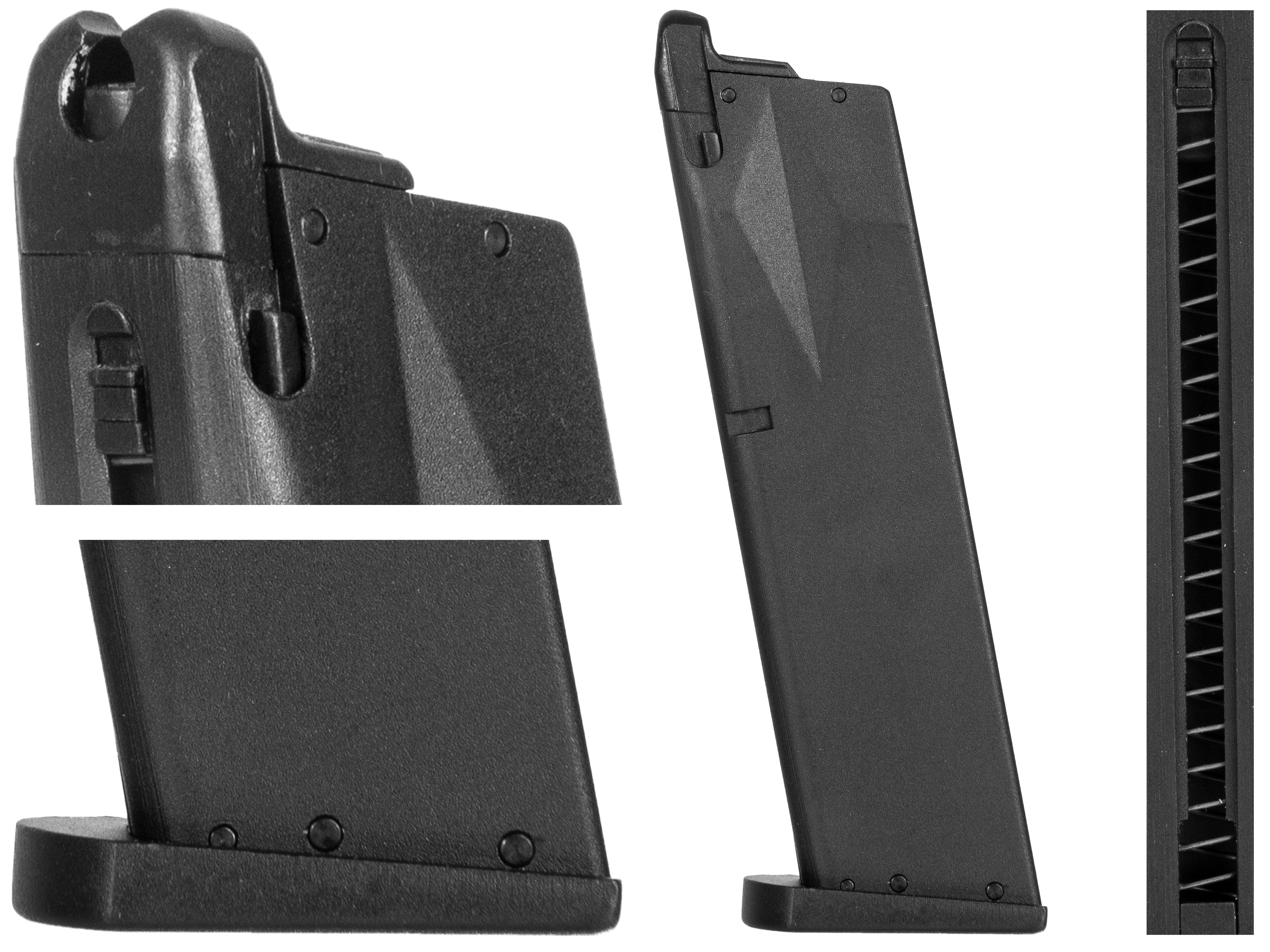 Korpus magazynka wykonano z metalu, stopka jest polimerowa. Wewnątrz magazynka znajduje się zintegrowany zbiornik na green gas oraz podajnik mieszący 24 kulki asg.