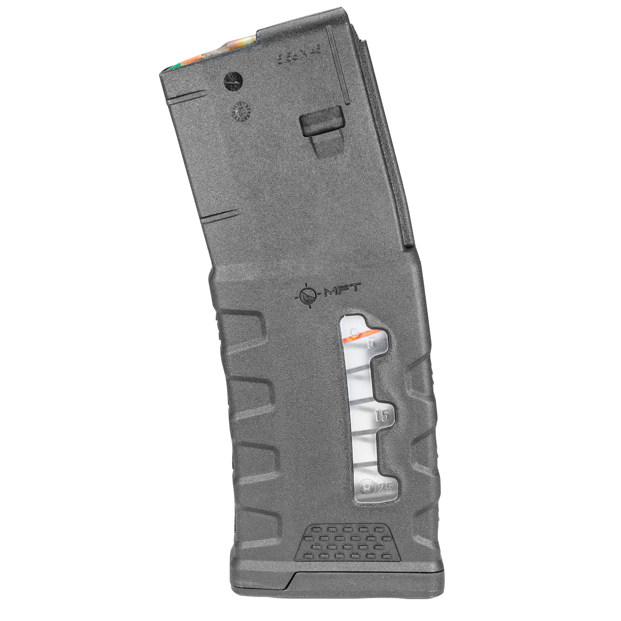 Magazynek MFT Extreme Duty wyposażony został w szereg rozwiązań ułatwiających dobycie i obsługę. Stopka otrzymała specyficzny kształt, który z jednej strony poszerza ją, ułatwiając wyjęcie z głębokiej ładownicy, z drugiej natomiast zachowuje niski profil, dzięki czemu nie będzie uciążliwy podczas przechodzenia do pozycji leżącej w kamizelce. Teksturowana powierzchnia ścianek okaże się natomiast przydatna przy niskich ładownicach retencyjnych wykorzystywanych w zastosowaniach sportowych. Dzięki zastosowaniu matrycy na dole magazynka będziemy mogli z łatwością opisać go przy pomocy pisaka.