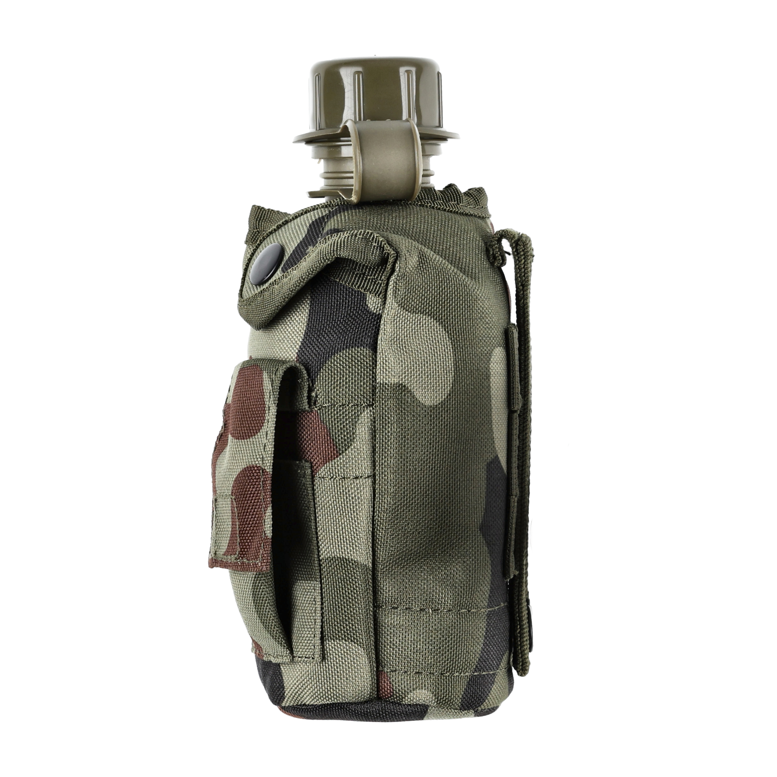 Manierka wojskowa US o pojemności 1L z pokrowcem w kamuflażu wz. 93 od firmy Texar. Manierka przystosowana do przenoszenia na pasie w systemie Alice.